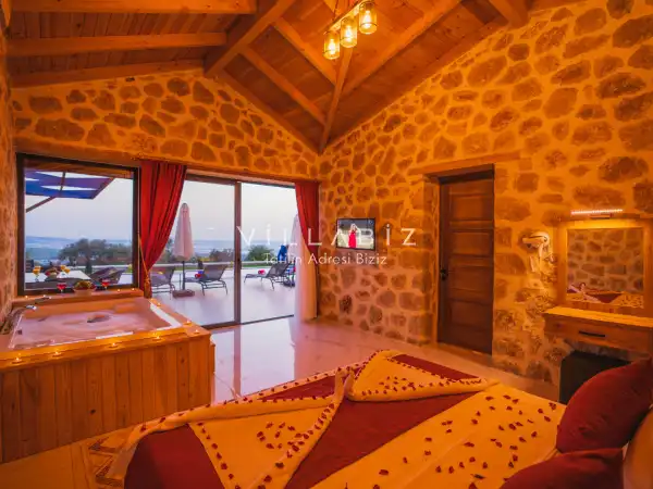Villamız Antalya’nın en çok tercih edilen tatil bölgesi Kaş/Kalkan mevkiinde yer almaktadır. Masmavi koylara ve muhteşem adalar manzarasına hakim bir noktadadır. Doğa içerisinde, bol oksijenli tertemiz havasıyla konaklayanlarına sağlıklı ve dingin bir tatilin kapılarını aralamaktadır.