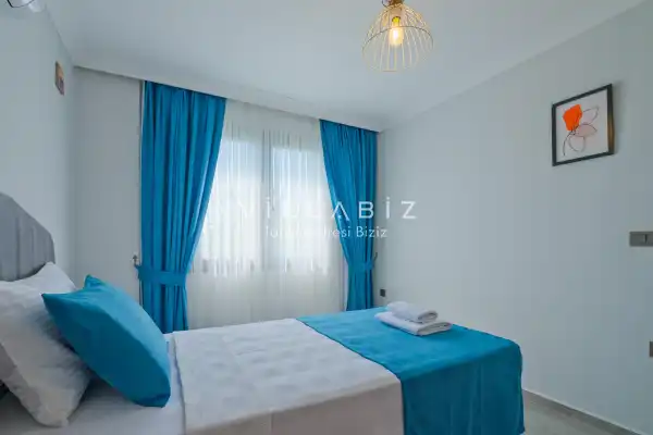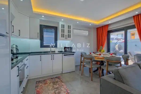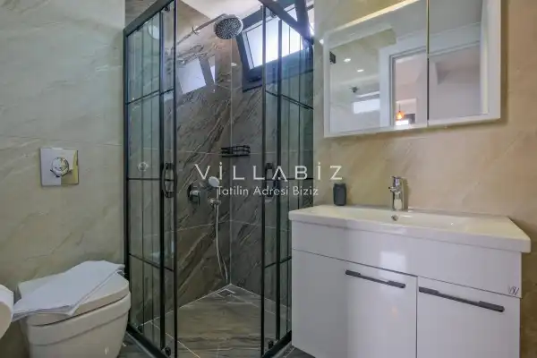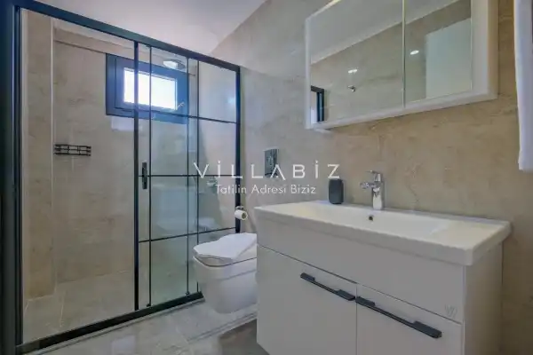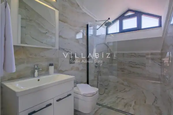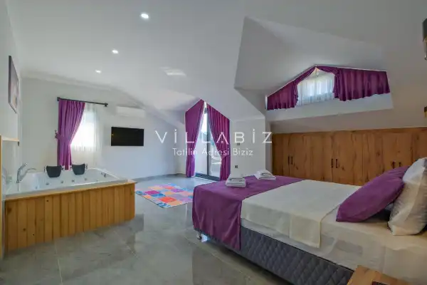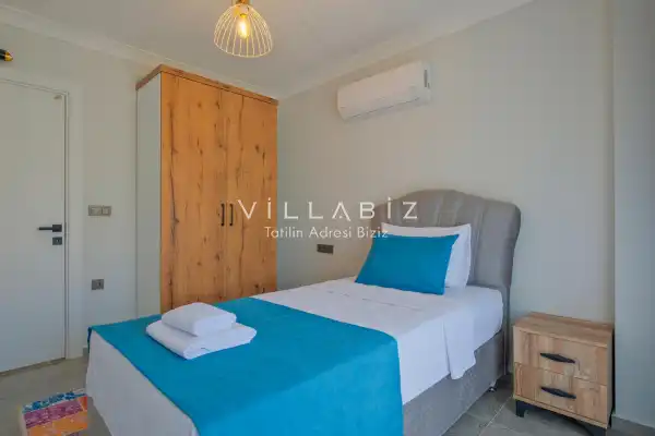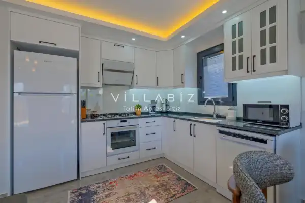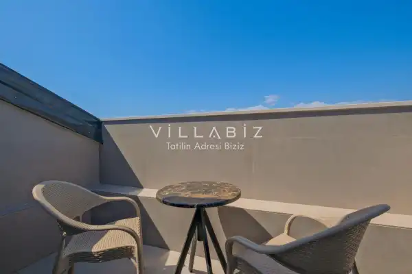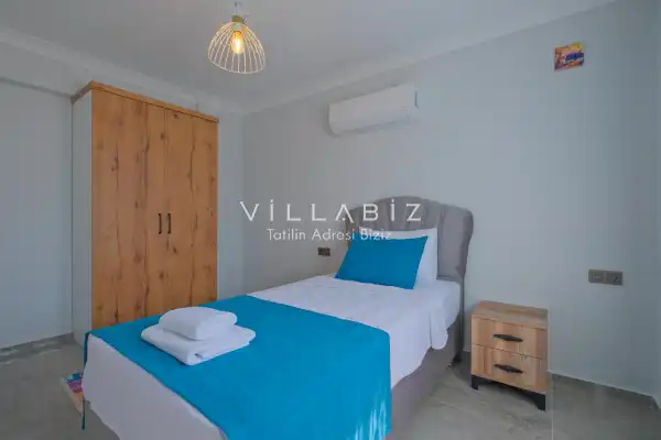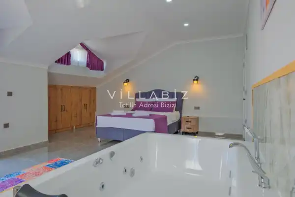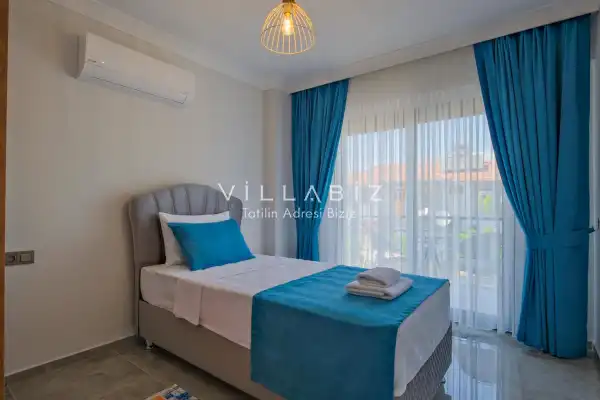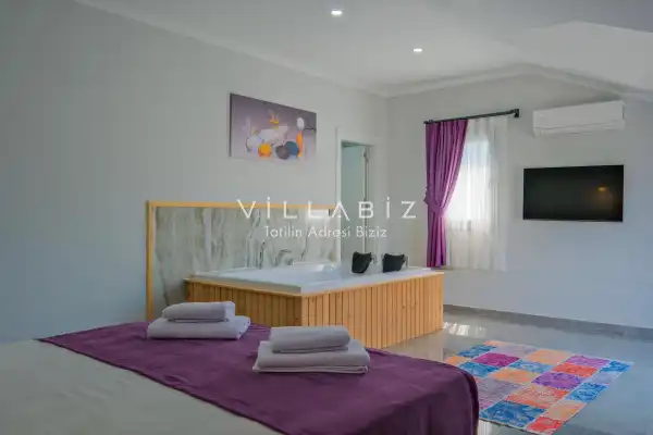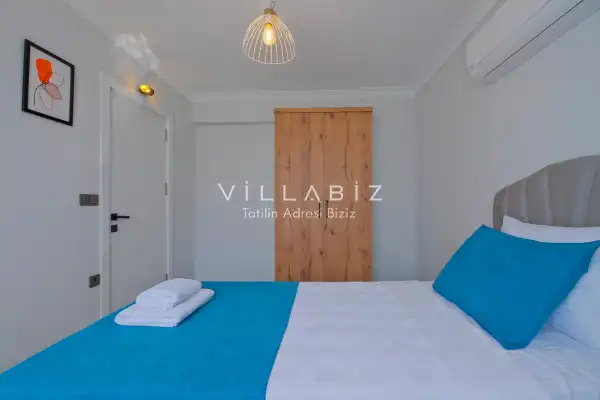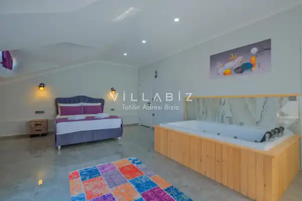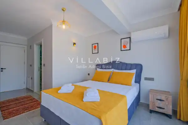 Toplam 4 yatak odasından oluşmuş, 6 kişi konaklama kapasitesine sahiptir. Geniş aileler ve kalabalık arkadaş grupları için oldukça idealdir. Oldukça şık ve modern bir şekilde döşenmiş olan villamızda misafirlerimiz için her şey düşünülmüştür. Havuz terasında bulunan şezlonglarda güneşlenebilir, bahçe masasında muhteşem yemekler yiyebilir, salıncakta sallanıp keyifli dakikalar geçirebilirsiniz.