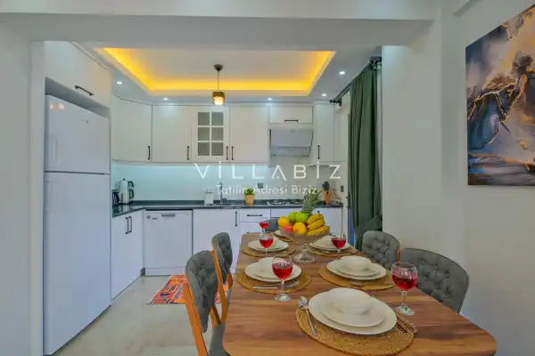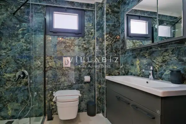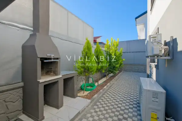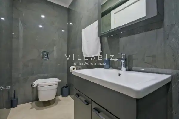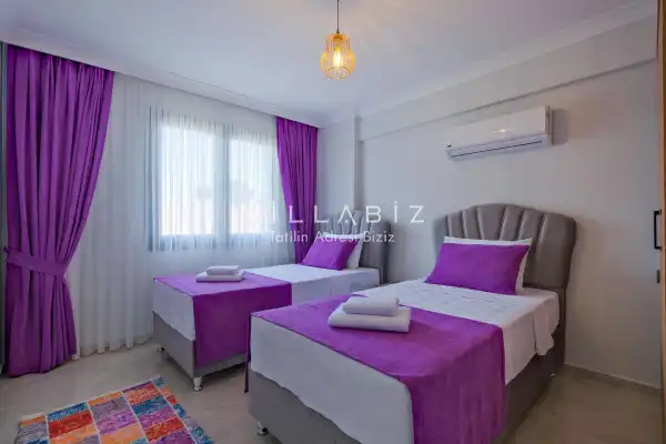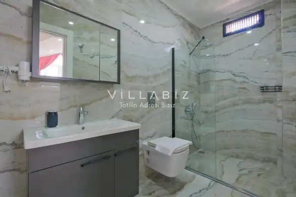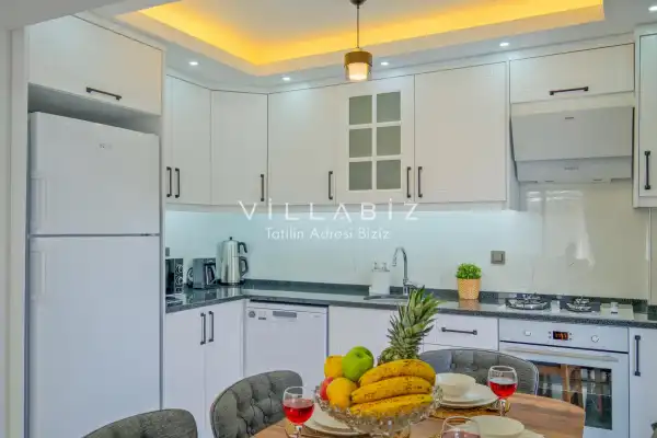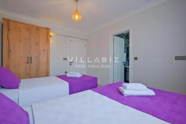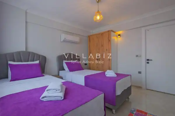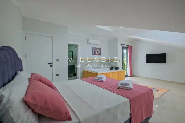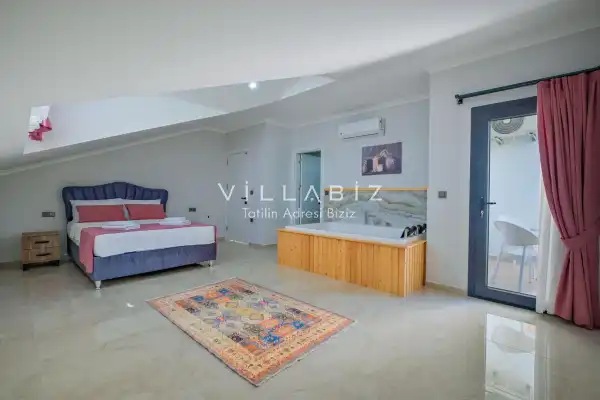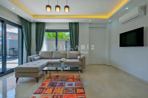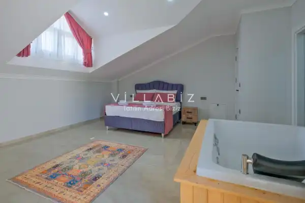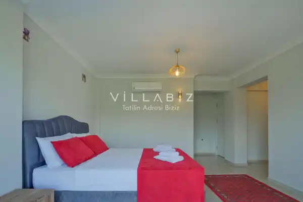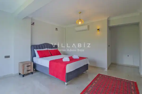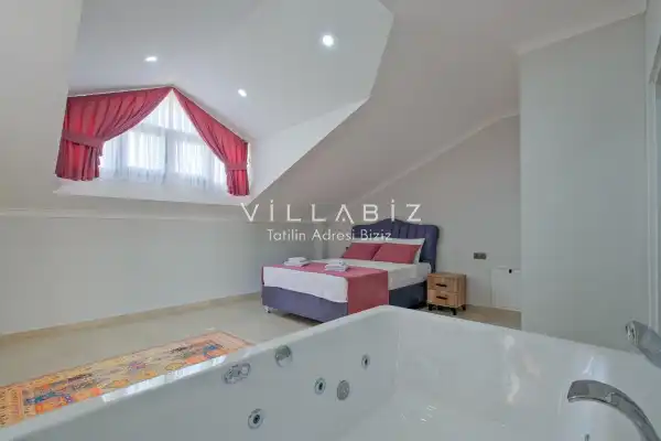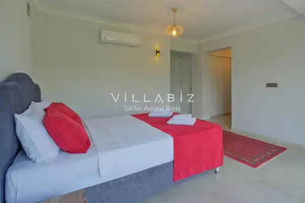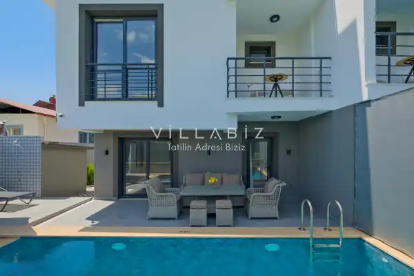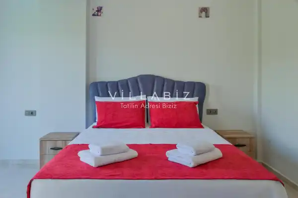 Toplam 3 yatak odasından oluşmuş, 6 kişi konaklama kapasitesine sahiptir. Geniş aileler ve kalabalık arkadaş grupları için oldukça idealdir. Oldukça şık ve modern bir şekilde döşenmiş olan villamızda misafirlerimiz için her şey düşünülmüştür. Havuz terasında bulunan şezlonglarda güneşlenebilir, bahçe masasında muhteşem yemekler yiyebilir, salıncakta sallanıp keyifli dakikalar geçirebilirsiniz.