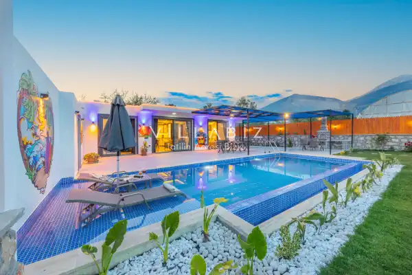 Villamız Antalya’nın en çok tercih edilen tatil bölgesi Kaş/Kalkan Çayköy mevkiinde yer almaktadır. Masmavi koylara ve muhteşem adalar manzarasına hakim bir noktadadır. Doğa içerisinde, bol oksijenli tertemiz havasıyla konaklayanlarına sağlıklı ve dingin bir tatilin kapılarını aralamaktadır