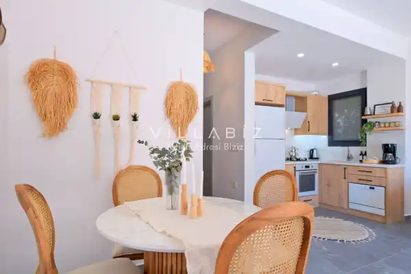 Toplam 1 yatak odasından oluşmuş, 2 kişi konaklama kapasitesine sahiptir. Balayı çiftleri için oldukça idealdir. Oldukça şık ve modern bir şekilde döşenmiş olan villamızda misafirlerimiz için her şey düşünülmüştür. Havuz terasında bulunan şezlonglarda güneşlenebilir, bahçe masasında muhteşem yemekler yiyebilir, salıncakta sallanıp keyifli dakikalar geçirebilirsiniz.