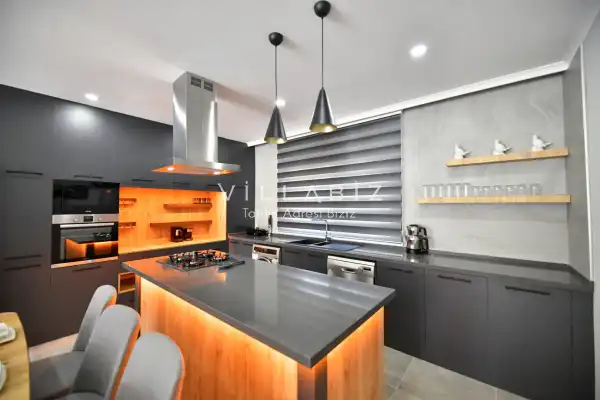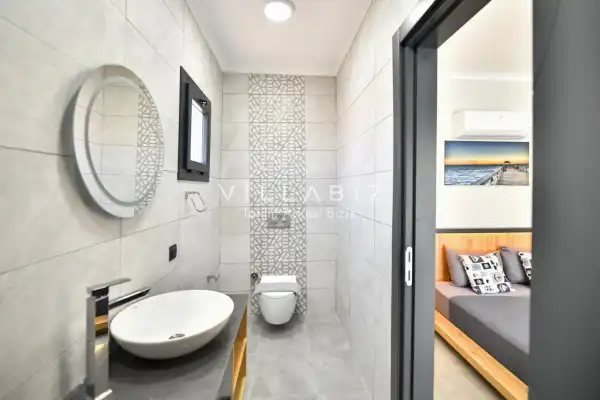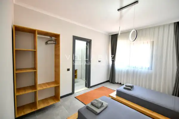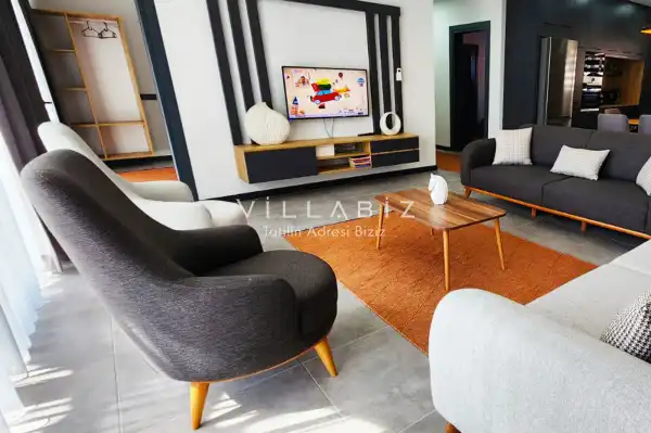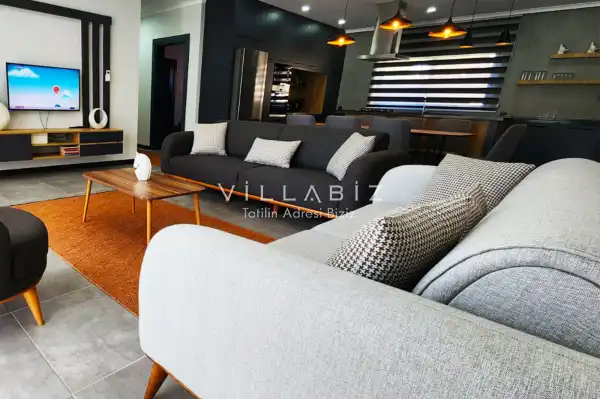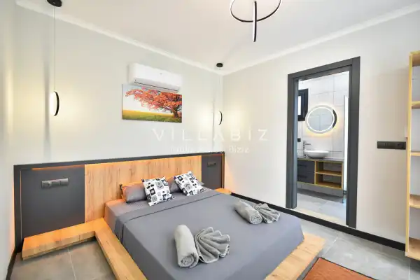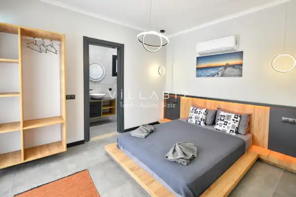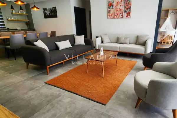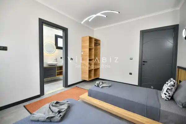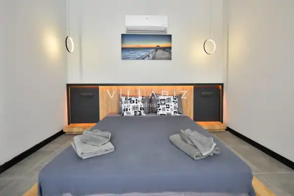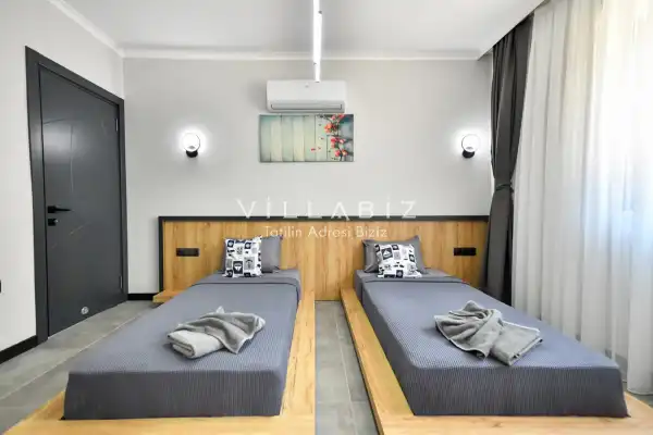 Toplam 4 yatak odasından oluşmuş, 8 kişi konaklama kapasitesine sahiptir. Geniş aileler ve kalabalık arkadaş grupları için oldukça idealdir. Oldukça şık ve modern bir şekilde döşenmiş olan villamızda misafirlerimiz için her şey düşünülmüştür. Havuz terasında bulunan şezlonglarda güneşlenebilir, bahçe masasında muhteşem yemekler yiyebilir, salıncakta sallanıp keyifli dakikalar geçirebilirsiniz.