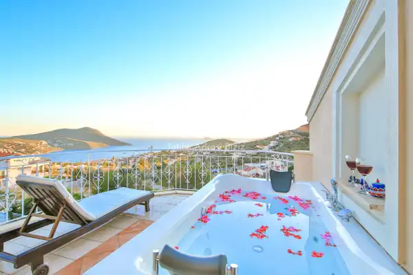 Muhteşem bir deniz manzarasına sahip olan villamız havuz terasının korunaklı yapısından dolayı muhafazakar aileler ve balayı çiftleri için oldukça idealdir. Sevdiklerinizle birlikte günbatımına karşı içeceklerinizi yudumlayıp manzaranın tadını çıkarabilirsiniz. Villamızda bulunan jakuzi ise rahatlayıp tüm yılın yorgunluğunu üzerinizden atmanıza yardımcı olacaktır.