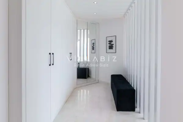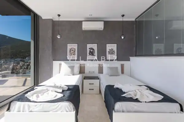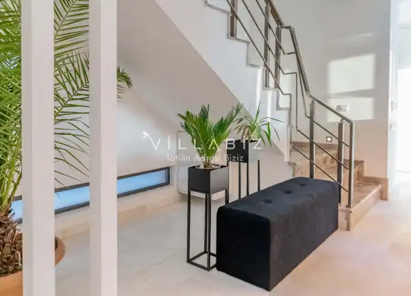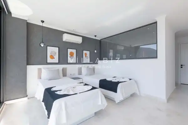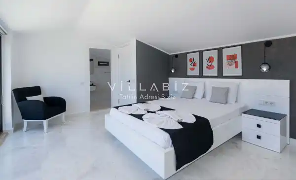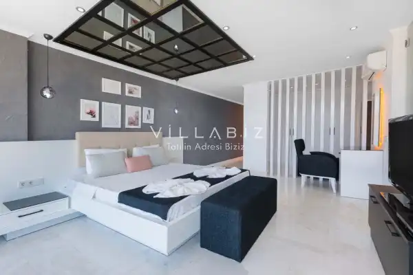 Toplam 5 yatak odasından oluşmuş, 10 kişi konaklama kapasitesine sahiptir. Geniş aileler ve kalabalık arkadaş grupları için oldukça idealdir. Oldukça şık ve modern bir şekilde döşenmiş olan villamızda misafirlerimiz için her şey düşünülmüştür. Havuz terasında bulunan şezlonglarda güneşlenebilir, bahçe masasında muhteşem yemekler yiyebilir, salıncakta sallanıp keyifli dakikalar geçirebilirsiniz.