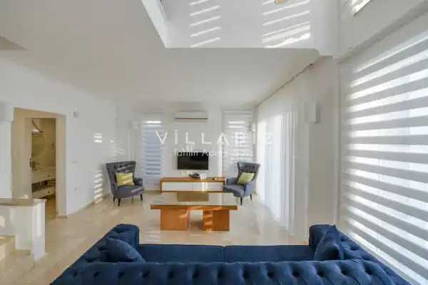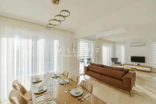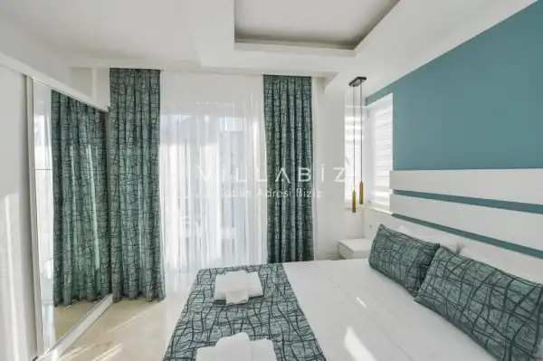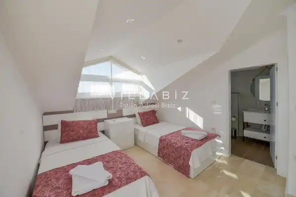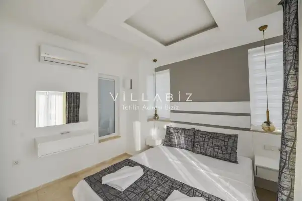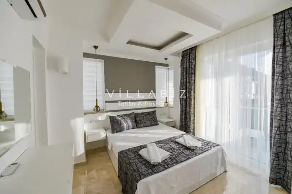 Toplam 4 yatak odasından oluşmuş, 8 kişi konaklama kapasitesine sahip seçenekleri bulunan lüks tatil villamızdır. Geniş aileler ve kalabalık arkadaş grupları için oldukça idealdir. Oldukça şık ve modern bir şekilde döşenmiş olan villamızda misafirlerimiz için herşey düşünülmüştür. Havuz terasında bulunan şezlonglarda güneşlenebilir, bahçe masasında muhteşem yemekler yiyebilir, salıncakta sallanıp keyifli dakikalar geçirebilirsiniz.Modern iç ve dış mimarisi, özenle dizayn edilmiş ekipmanları ve geniş havuz - bahçe alanı değerli misafirlerimize konforlu bir tatil imkanı sunmaktadır.
