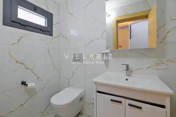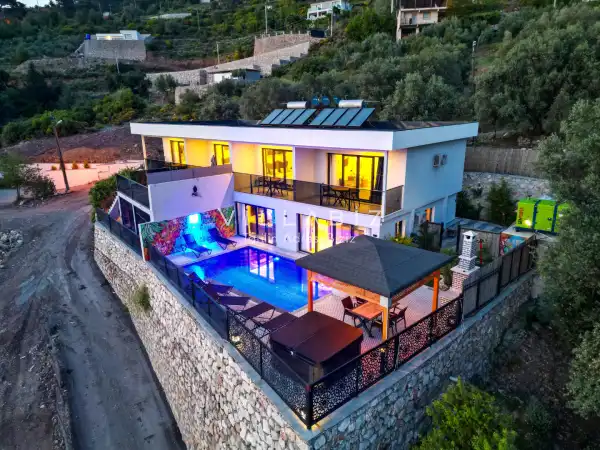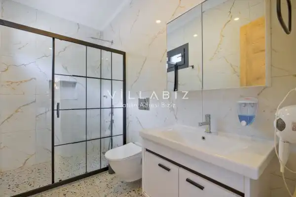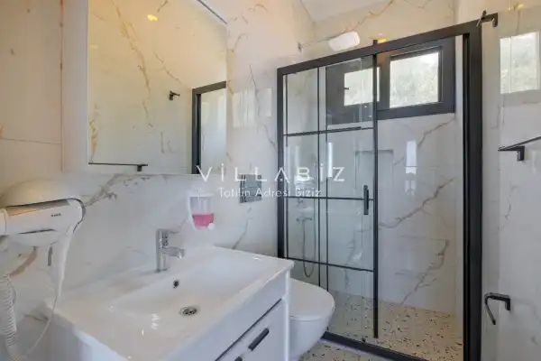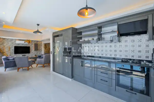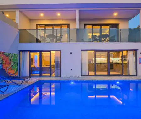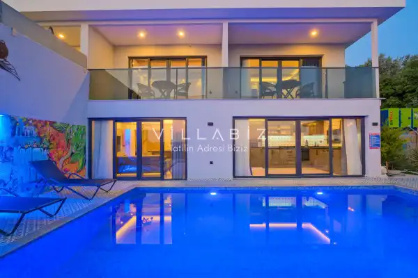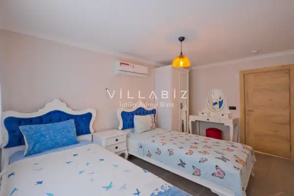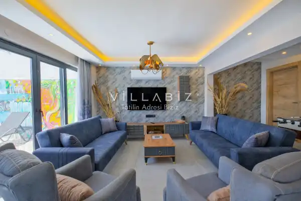 Toplam 3 yatak odasından oluşmuş, 6 kişi konaklama kapasitesine sahiptir. Geniş aileler ve kalabalık arkadaş grupları için oldukça idealdir. Oldukça şık ve modern bir şekilde döşenmiş olan villamızda misafirlerimiz için her şey düşünülmüştür. Havuz terasında bulunan şezlonglarda güneşlenebilir, bahçe masasında muhteşem yemekler yiyebilir, salıncakta sallanıp keyifli dakikalar geçirebilirsiniz.