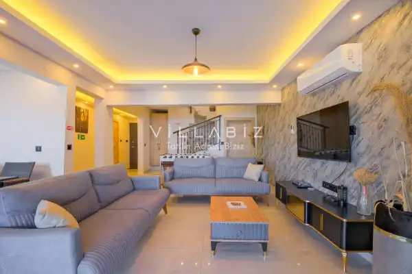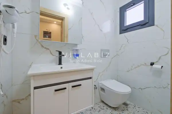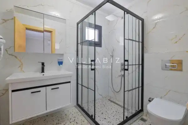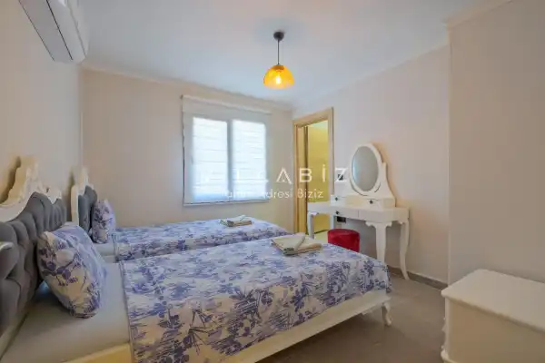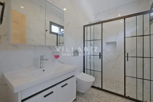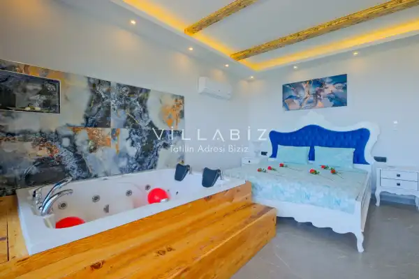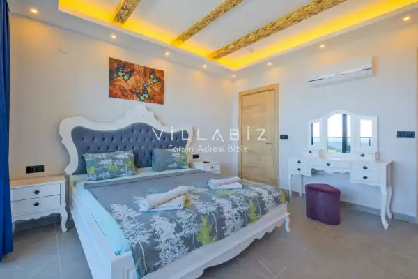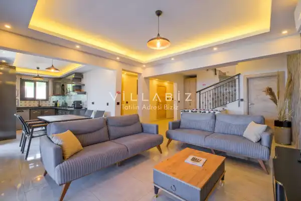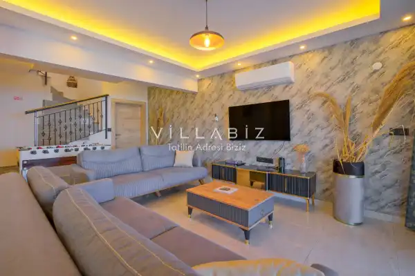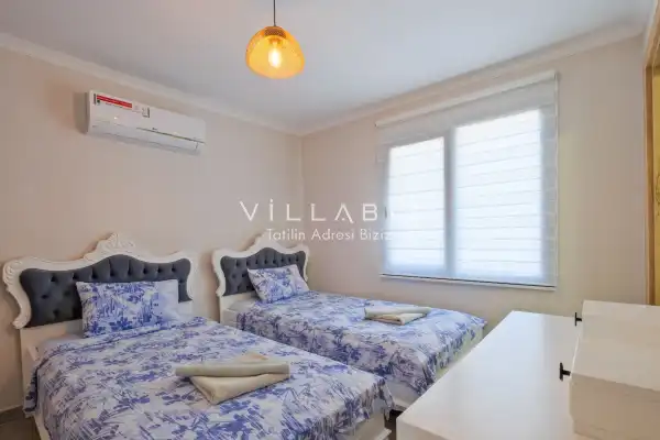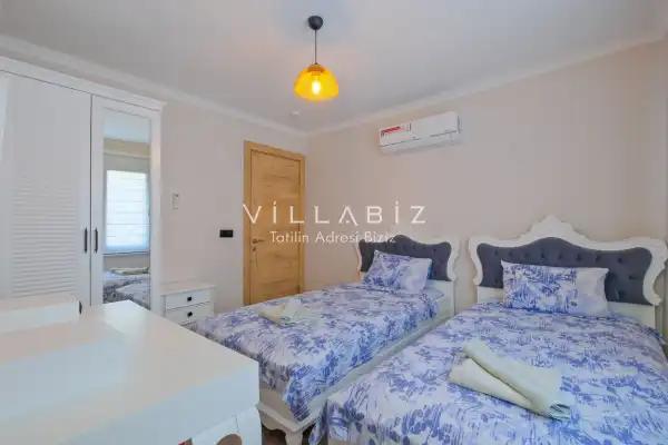 Toplam 3 yatak odasından oluşmuş, 6 kişi konaklama kapasitesine sahiptir. Geniş aileler ve kalabalık arkadaş grupları için oldukça idealdir. Oldukça şık ve modern bir şekilde döşenmiş olan villamızda misafirlerimiz için her şey düşünülmüştür. Havuz terasında bulunan şezlonglarda güneşlenebilir, bahçe masasında muhteşem yemekler yiyebilir, salıncakta sallanıp keyifli dakikalar geçirebilirsiniz.