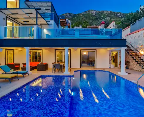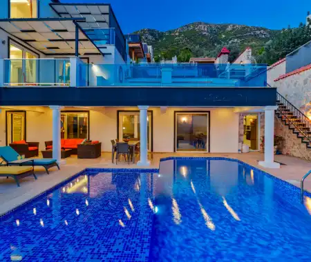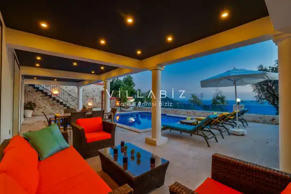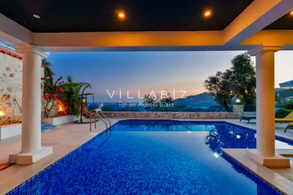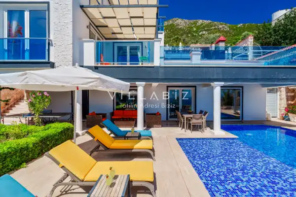 Villamız Antalya’nın en çok tercih edilen tatil bölgesi Kaş/Kalkan mevkiinde yer almaktadır. Masmavi koylara ve muhteşem adalar manzarasına hakim bir noktadadır. Doğa içerisinde, bol oksijenli tertemiz havasıyla konaklayanlarına sağlıklı ve dingin bir tatilin kapılarını aralamaktadır