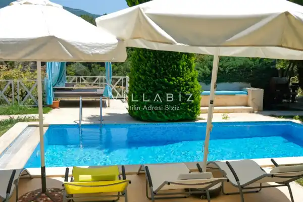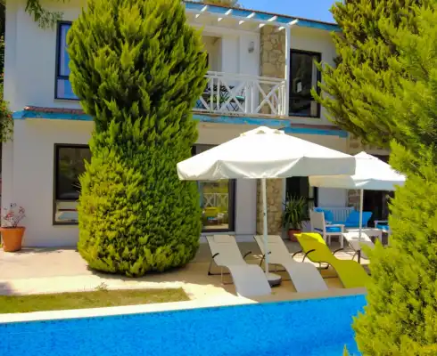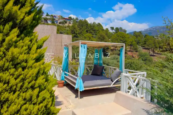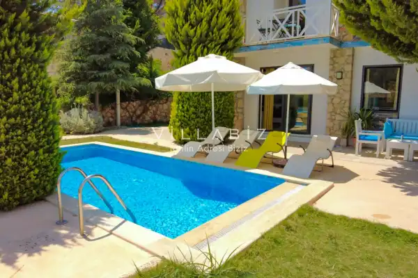 Villamız Antalya'nın en sakin ve Akdeniz koylarının masmavi büyüleyiciliğine sahip bölgesi Kalkan'ın Üzümlü mevkiinde yer almaktadır. Etrafını saran çam ve sedir ormanlarının, kusursuz maki iklimiyle birleştiği; sonunun hep sonsuz maviliklere eriştiği konumuyla kusursuz bir tatil isteyen balayı çiftlerimizin her anını özel ve unutulmaz kılmaktadır. Patara plajı, Kaputaş Plajı, Saklıkent Kanyonu, Gizlikent Şelalesi gibi turistik alanlara yakınlığıyla da trafiğe takılmadan etrafı keşfedecekleri bir tatil imkanı sunmaktadır.