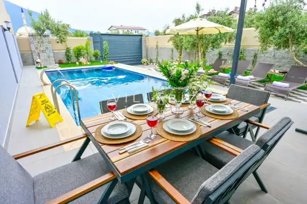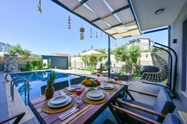 Villa Mevsim 1, Fethiye Karaçulha mevkiinde konumlanan şirin bahçeli havuzu oldukça korunaklı villamızdır. Müstakil yüzme havuzu dışarıya karşı oldukça korunaklı olduğu için tatilde gözlerden uzak olmak isteyen misafirlerimiz rahat edeceklerdir.