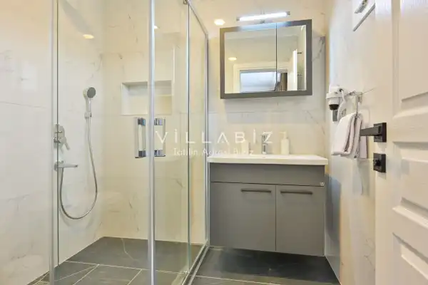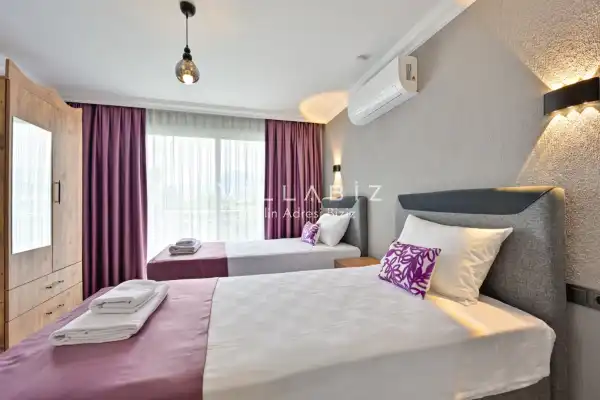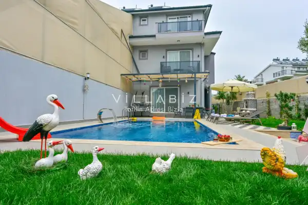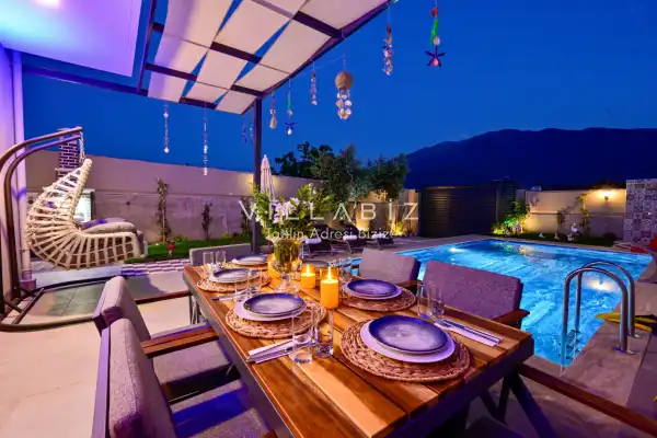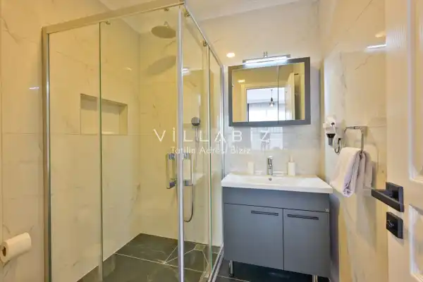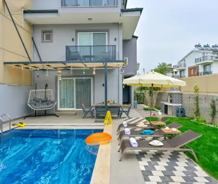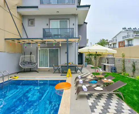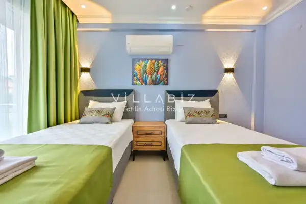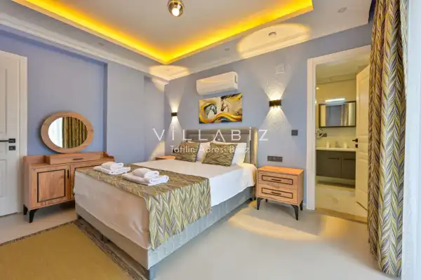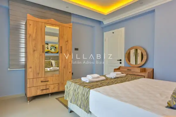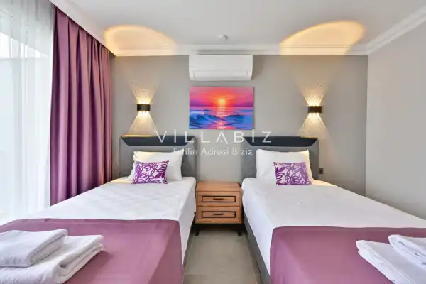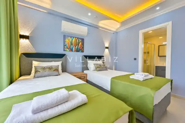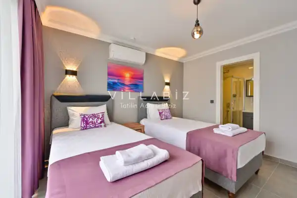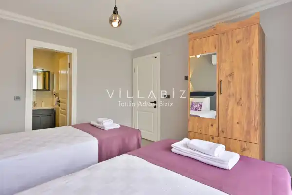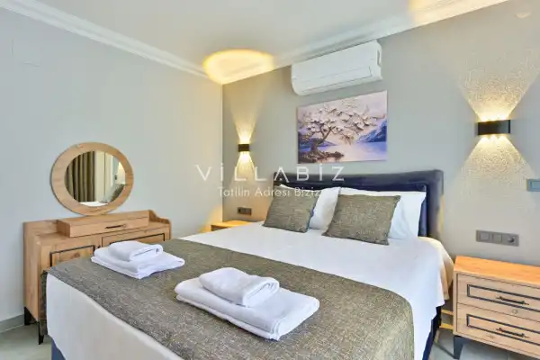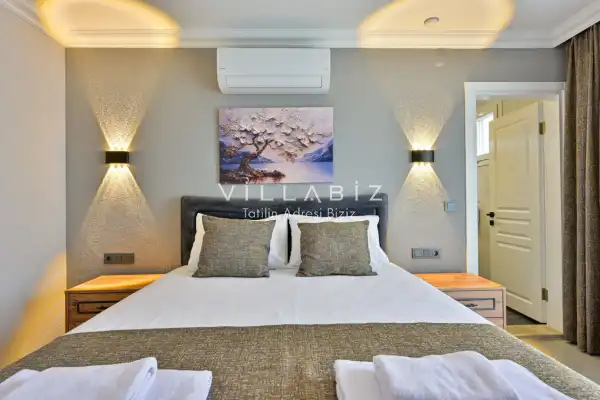Toplam 4 yatak odasından oluşmuş, 8 kişi konaklama kapasitesine sahiptir. Geniş aileler ve kalabalık arkadaş grupları için oldukça idealdir. Oldukça şık ve modern bir şekilde döşenmiş olan villamızda misafirlerimiz için her şey düşünülmüştür. Havuz terasında bulunan şezlonglarda güneşlenebilir, bahçe masasında muhteşem yemekler yiyebilir, salıncakta sallanıp keyifli dakikalar geçirebilirsiniz.