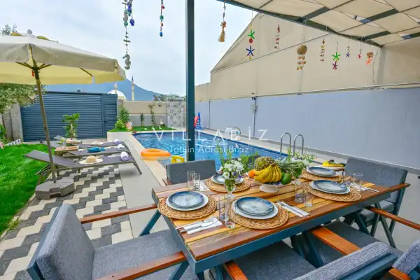 Villa Mevsim 2, Fethiye Karaçulha mevkiinde konumlanan şirin bahçeli havuzu oldukça korunaklı villamızdır. Müstakil yüzme havuzu dışarıya karşı oldukça korunaklı olduğu için tatilde gözlerden uzak olmak isteyen misafirlerimiz rahat edeceklerdir.