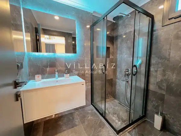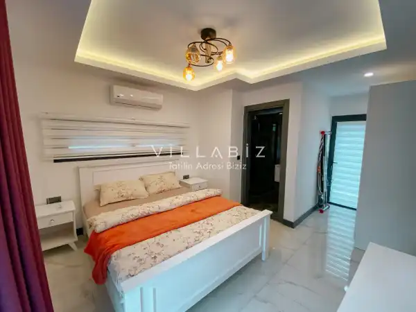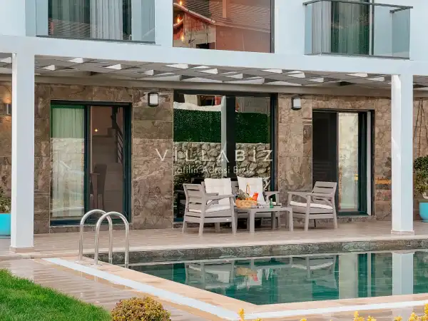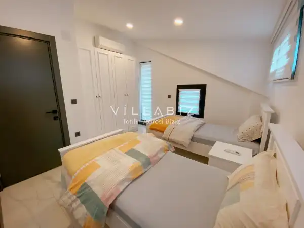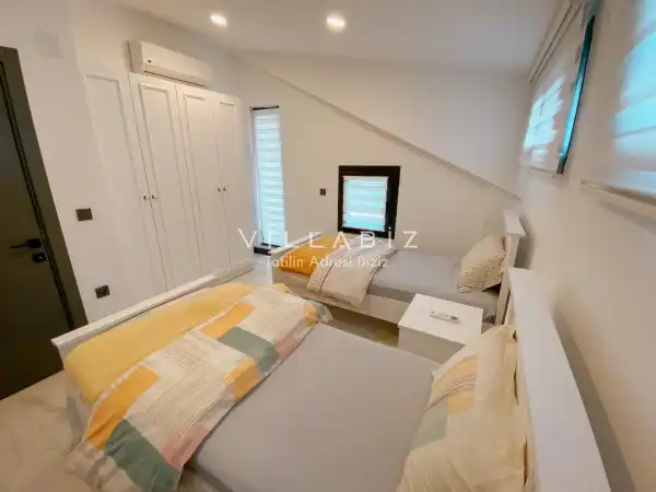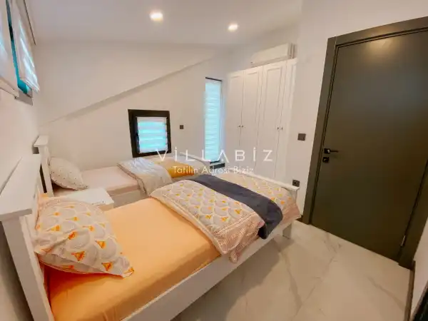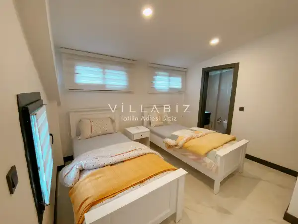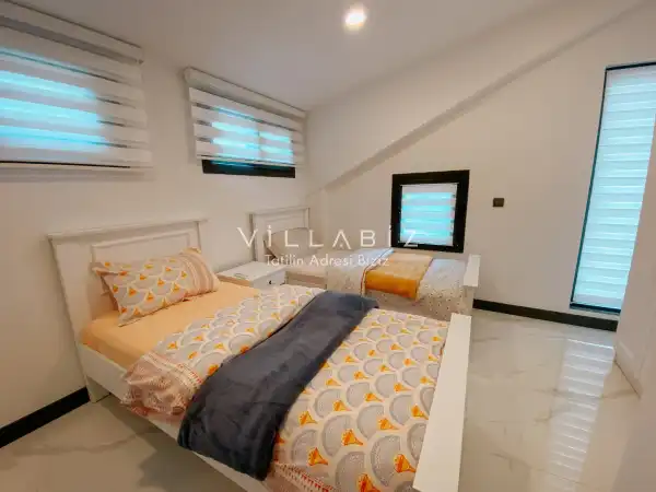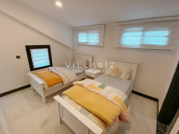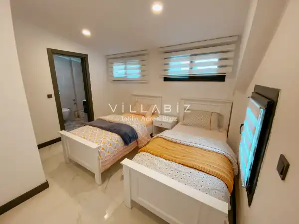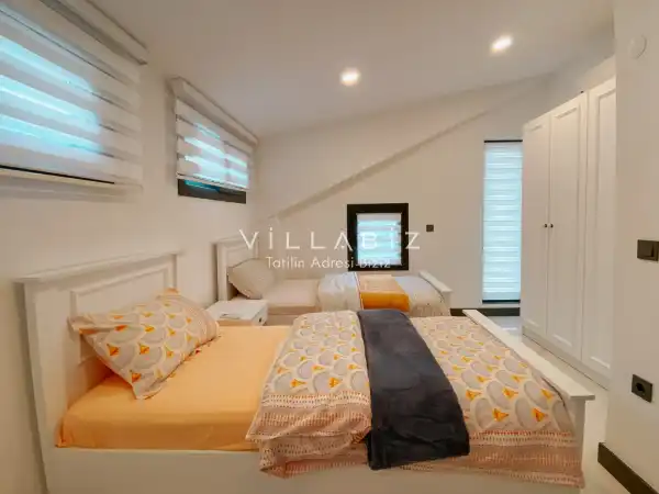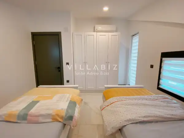 Toplam 4 yatak odasından oluşmuş,8 kişi konaklama kapasitesine sahiptir. Geniş aileler ve kalabalık arkadaş grupları için oldukça idealdir. Oldukça şık ve modern bir şekilde döşenmiş olan villamızda misafirlerimiz için her şey düşünülmüştür. Havuz terasında bulunan şezlonglarda güneşlenebilir, bahçe masasında muhteşem yemekler yiyebilir, salıncakta sallanıp keyifli dakikalar geçirebilirsiniz.