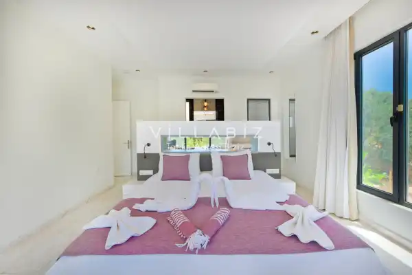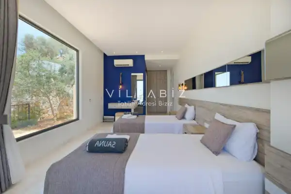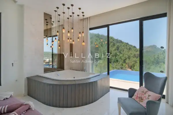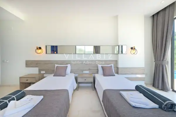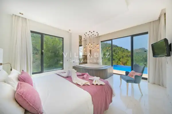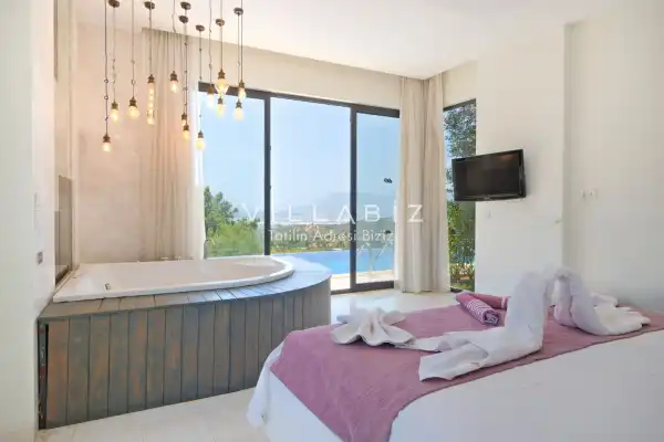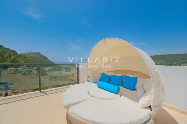 Villamız Antalya'nın en sakin ve Akdeniz koylarının masmavi büyüleyiciliğine sahip bölgesi Kalkan'ın Üzümlü mevkiinde yer almaktadır. Etrafını saran çam ve sedir ormanlarının, kusursuz maki iklimiyle birleştiği; sonunun hep sonsuz maviliklere eriştiği konumuyla kusursuz bir tatil isteyen balayı çiftlerimizin her anını özel ve unutulmaz kılmaktadır. Patara plajı, Kaputaş Plajı, Saklıkent Kanyonu, Gizlikent Şelalesi gibi turistik alanlara yakınlığıyla da trafiğe takılmadan etrafı keşfedecekleri bir tatil imkanı sunmaktadır.