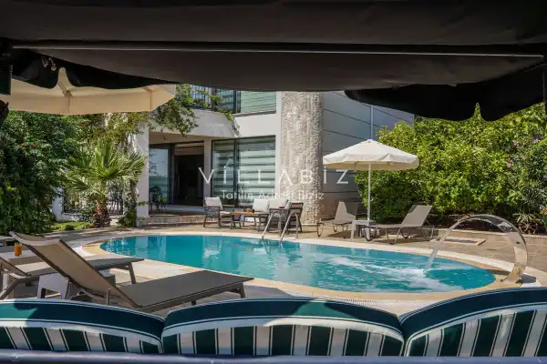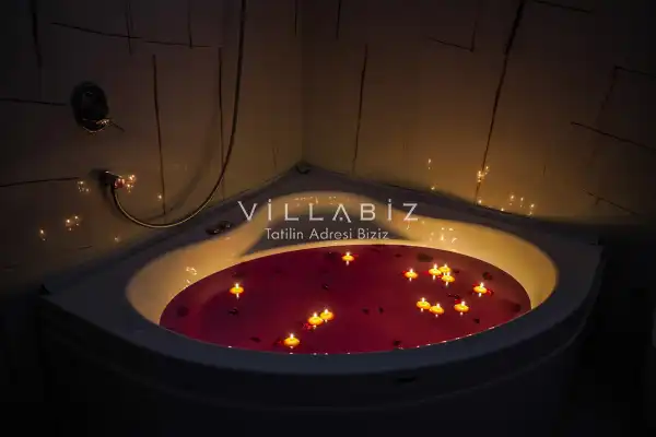 Muhteşem bir deniz manzarasına sahip olan villamız havuz terasının korunaklı yapısından dolayı ve balayı çiftleri için oldukça idealdir. Sevdiklerinizle birlikte günbatımına karşı içeceklerinizi yudumlayıp manzaranın tadını çıkarabilirsiniz. Villamızda bulunan jakuzi ise rahatlayıp tüm yılın yorgunluğunu üzerinizden atmanıza yardımcı olacaktır.