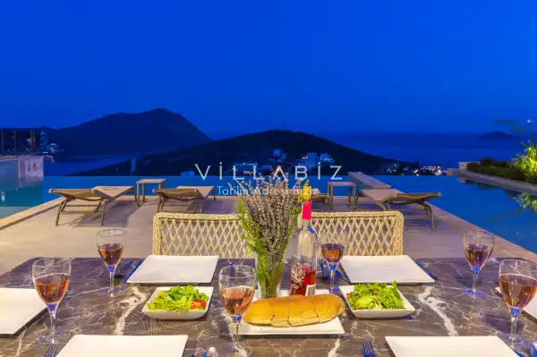 Muhteşem bir deniz manzarasına sahip olan villamız havuz terasının korunaklı yapısından dolayı ve balayı çiftleri için oldukça idealdir. Sevdiklerinizle birlikte günbatımına karşı içeceklerinizi yudumlayıp manzaranın tadını çıkarabilirsiniz.