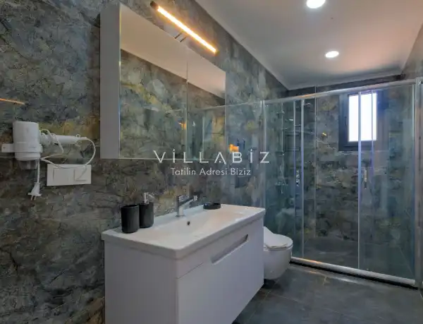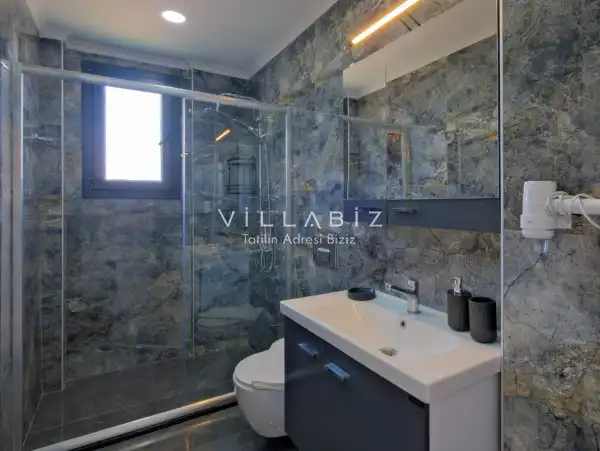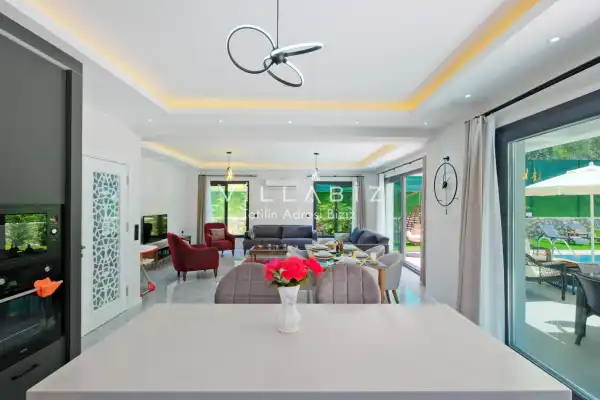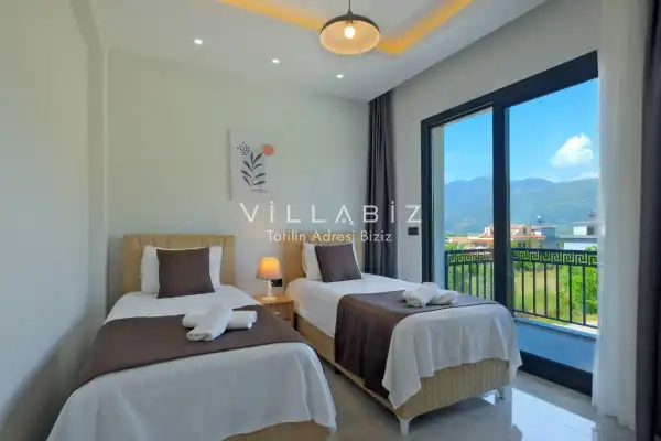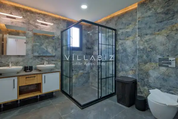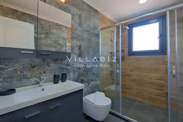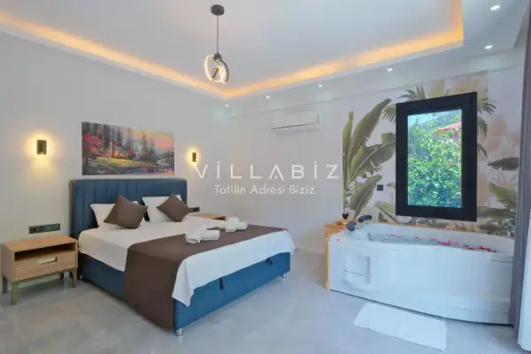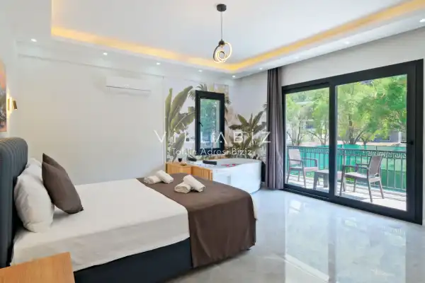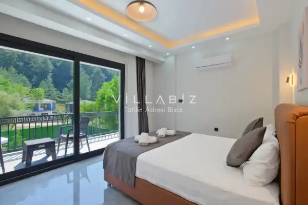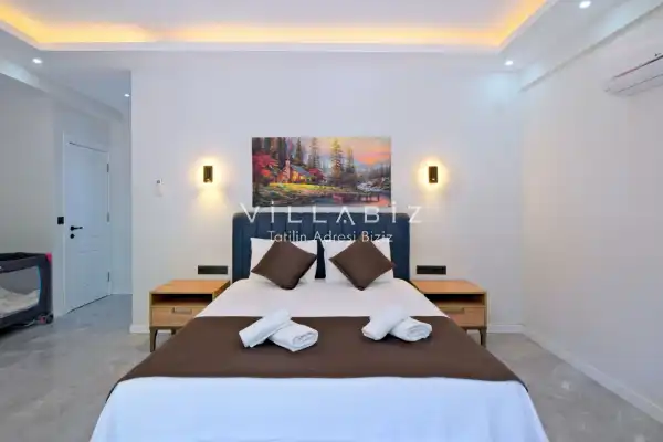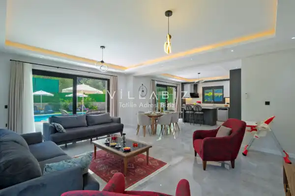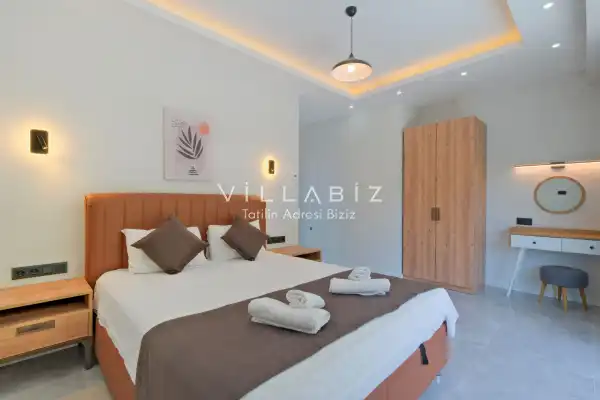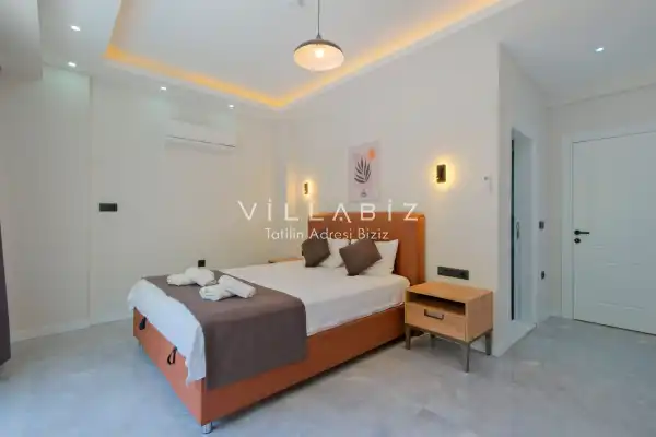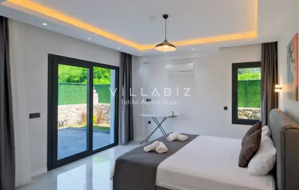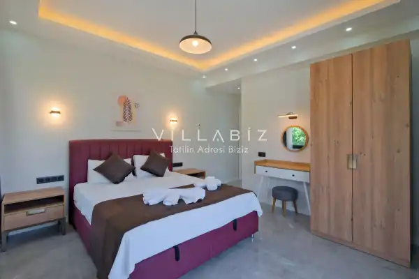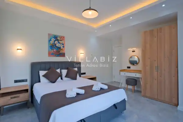 Toplam 5 yatak odasından oluşmuş, 10 kişi konaklama kapasitesine sahiptir. Geniş aileler ve kalabalık arkadaş grupları için oldukça idealdir. Oldukça şık ve modern bir şekilde döşenmiş olan villamızda misafirlerimiz için her şey düşünülmüştür. Havuz terasında bulunan şezlonglarda güneşlenebilir, bahçe masasında muhteşem yemekler yiyebilir, salıncakta sallanıp keyifli dakikalar geçirebilirsiniz.