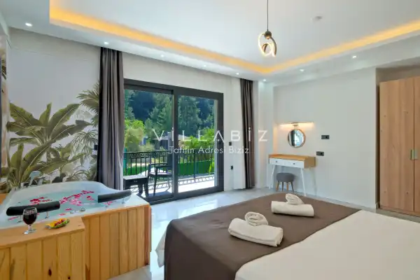 Villamız, Muğla'nın en güzel ilçelerinden biri olan Fethiye'nin Yeşilüzümlü Köyü'nde yer almaktadır. En sevilen tatil beldelerinden biri olan Fethiye, eşsiz güzellikleriyle misafirlerine unutulmaz bir tatil deneyimi sunar. Fethiye içerisindeki Yeşilüzümlü Köyü'nde bulunan Villa Mirage Üzümlü, son derece keyifli bir tatil için ihtiyacınız olan her şeyi size sunmaktadır.