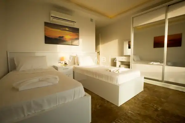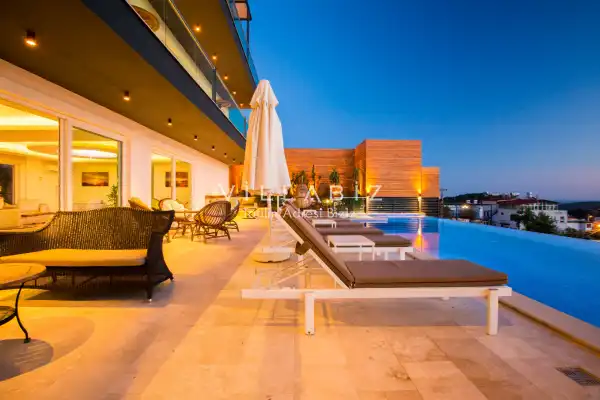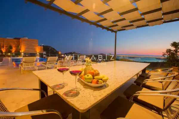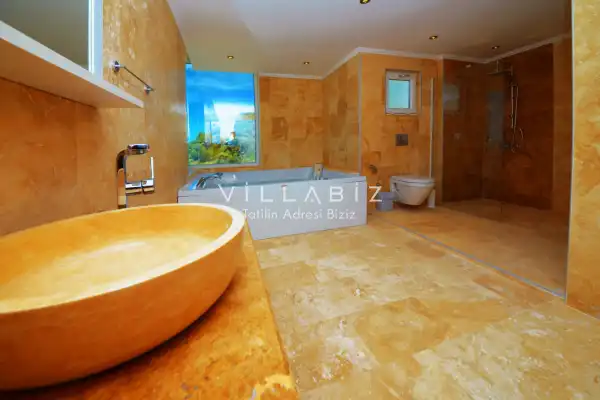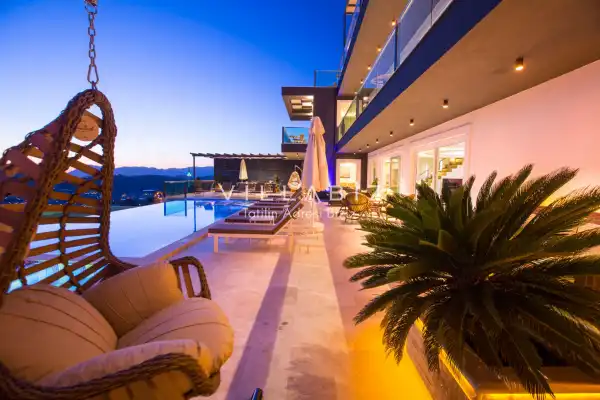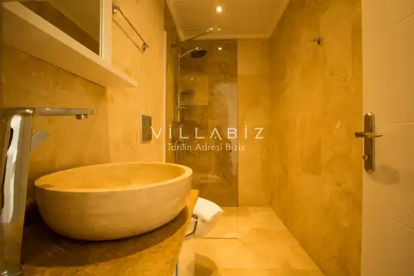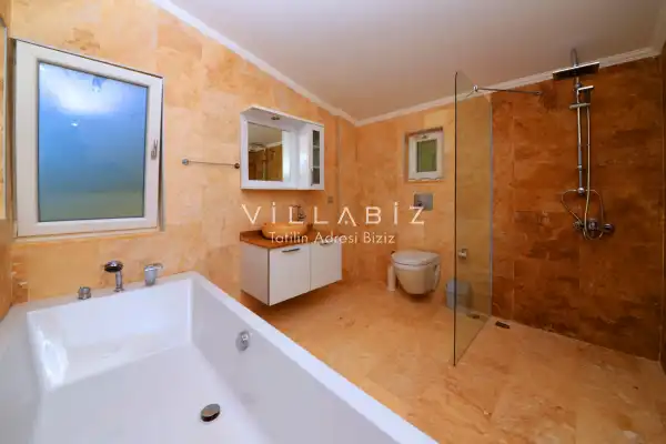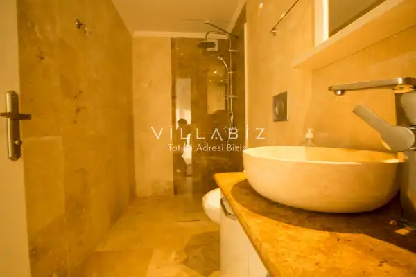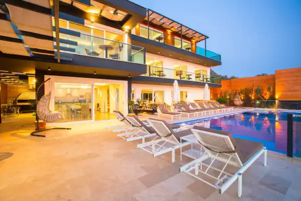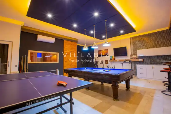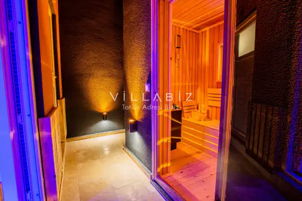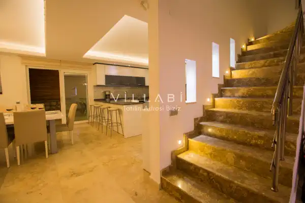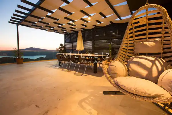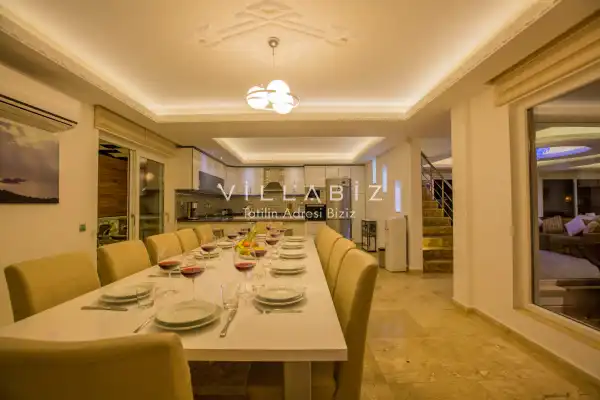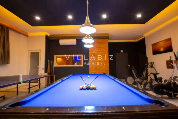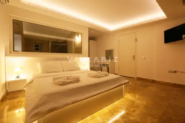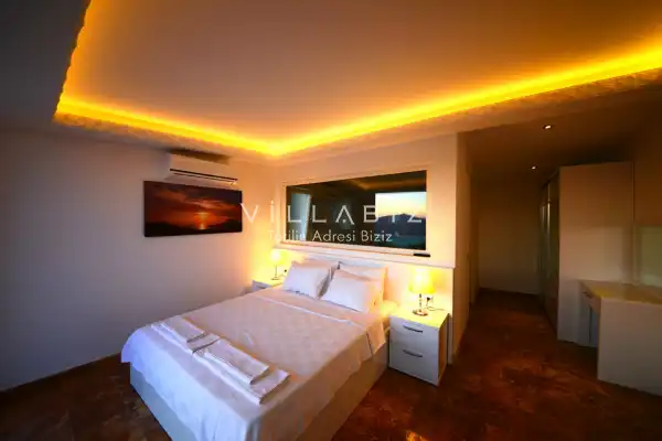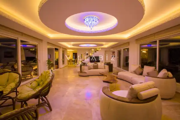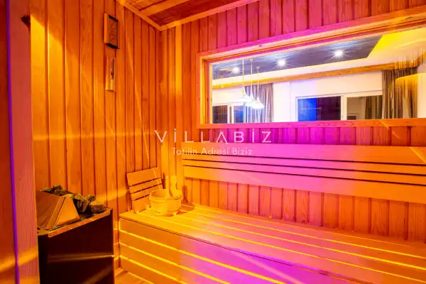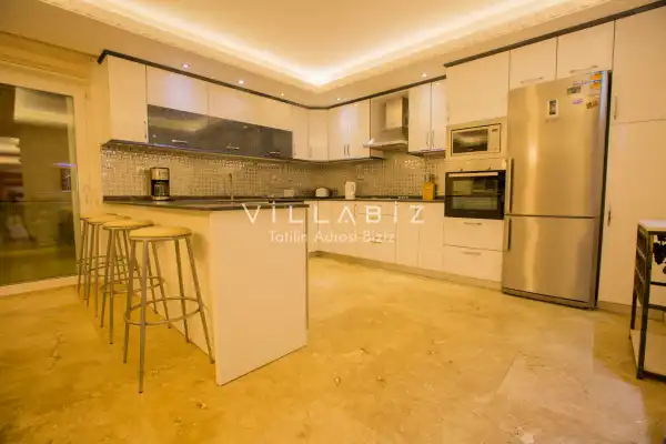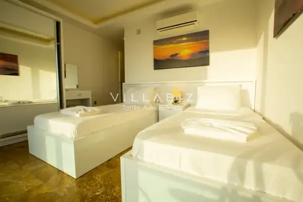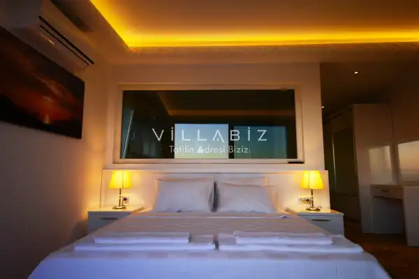 Toplam 7 yatak odasından oluşmuş, 14 kişi konaklama kapasitesine sahiptir. Geniş aileler ve kalabalık arkadaş grupları için oldukça idealdir. Oldukça şık ve modern bir şekilde döşenmiş olan villamızda misafirlerimiz için her şey düşünülmüştür. Havuz terasında bulunan şezlonglarda güneşlenebilir, bahçe masasında muhteşem yemekler yiyebilir, salıncakta sallanıp keyifli dakikalar geçirebilirsiniz.