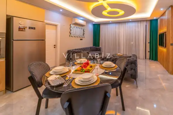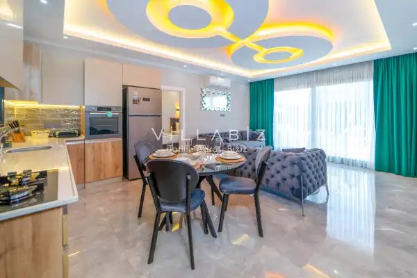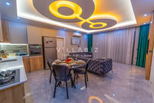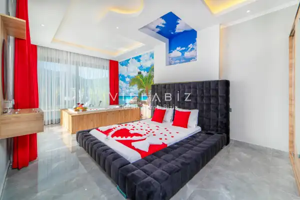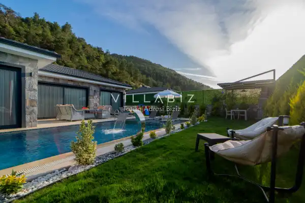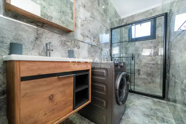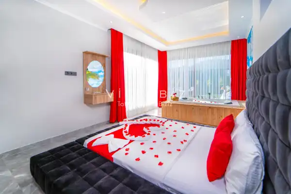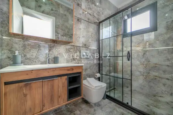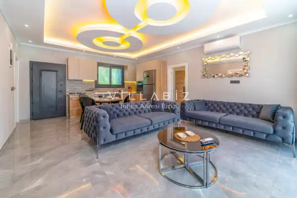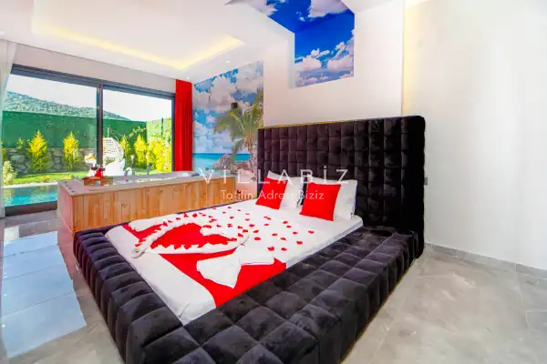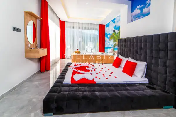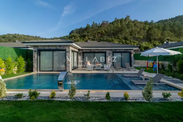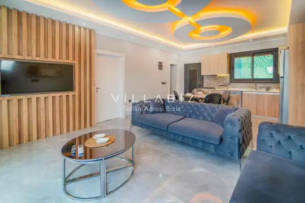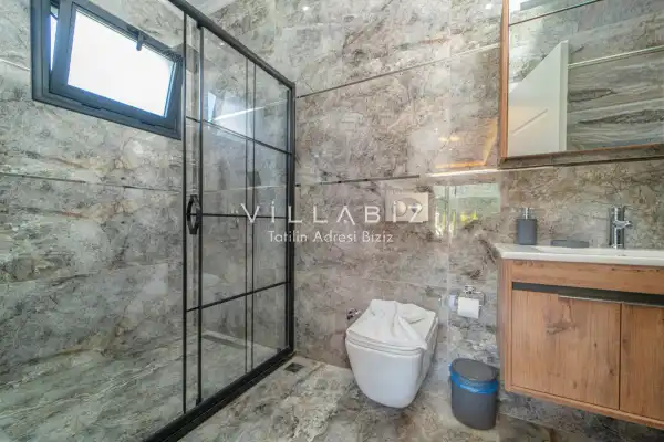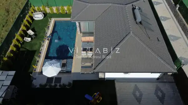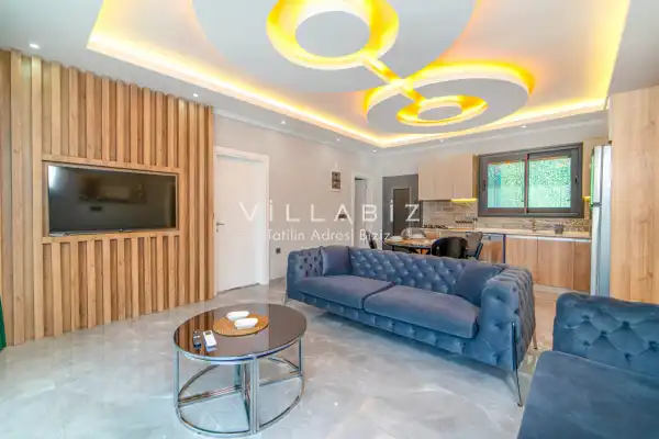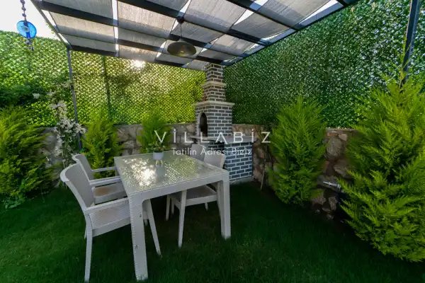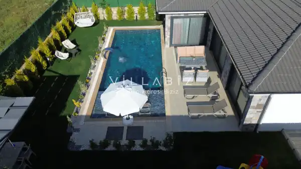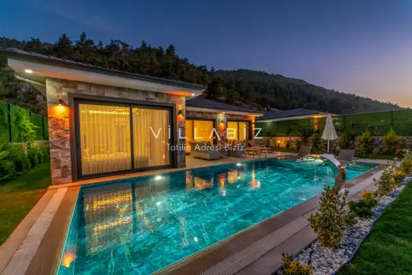 Villamız 4 kişilik kapasiteye sahiptir ve 2 yatak odası yer alır. Villanın 3 banyosu ve jakuzisi mevcut. Açık mutfağı ve kendine ait bahçesinde bir havuzu var. Mutfağında bulaşık makinesi, buzdolabı, ankastre fırın, tost makinesi ve mutfakta ihtiyaç olan hemen hemen bütün gereçler bulunuyor. Barbekü, masa, sandalyeler, şezlonglar ve şemsiyeler bahçe keyfini sınırsız yaşamanıza imkan tanıyor. Salonunda oturma grubu, televizyon, eşyalar bulunurken, tüm odalar için ayrı klima imkanı var.