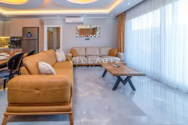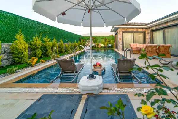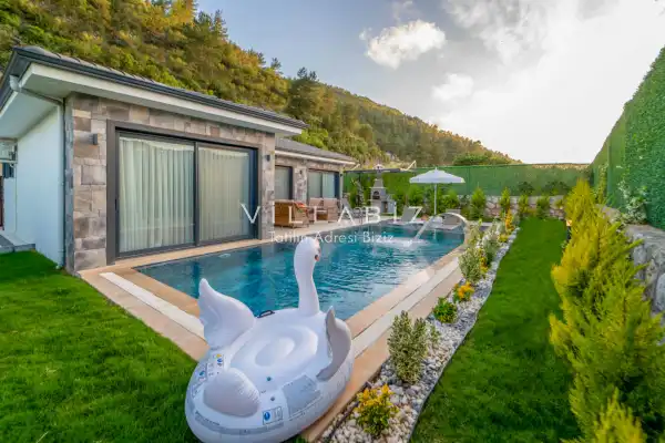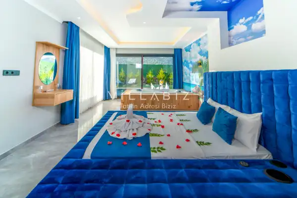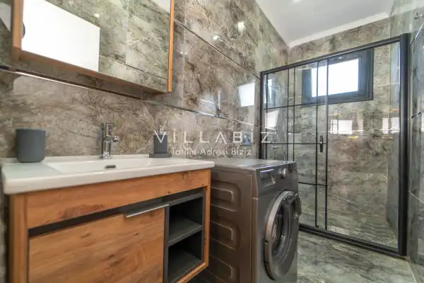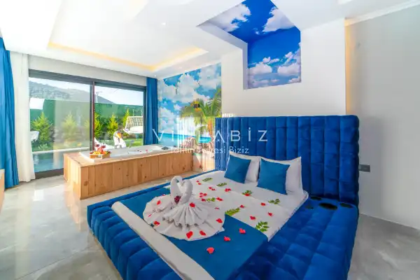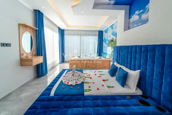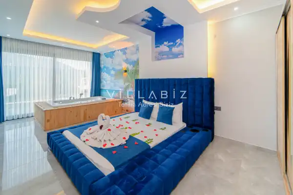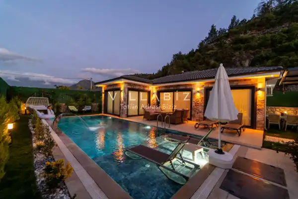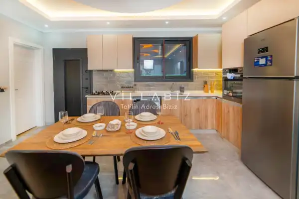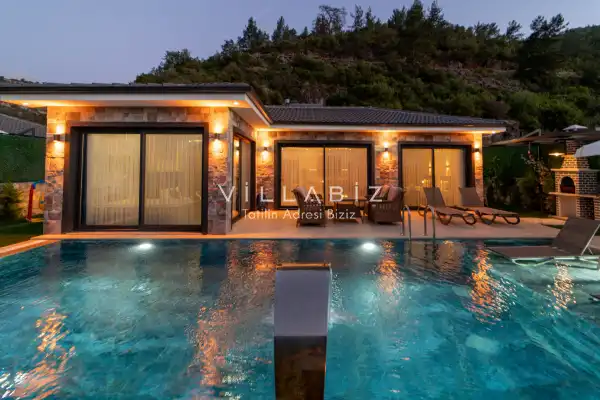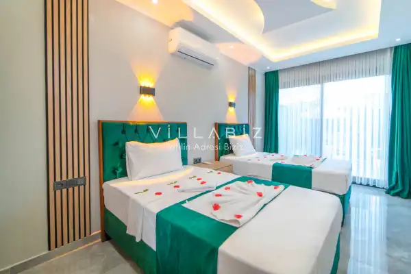 Villamız 4 kişilik kapasiteye sahiptir ve 2 yatak odası yer alır. Villanın 3 banyosu ve jakuzisi mevcut. Açık mutfağı ve kendine ait bahçesinde bir havuzu var. Mutfağında bulaşık makinesi, buzdolabı, ankastre fırın, tost makinesi ve mutfakta ihtiyaç olan hemen hemen bütün gereçler bulunuyor. Barbekü, masa, sandalyeler, şezlonglar ve şemsiyeler bahçe keyfini sınırsız yaşamanıza imkan tanıyor. Salonunda oturma grubu, televizyon, eşyalar bulunurken, tüm odalar için ayrı klima imkanı var.