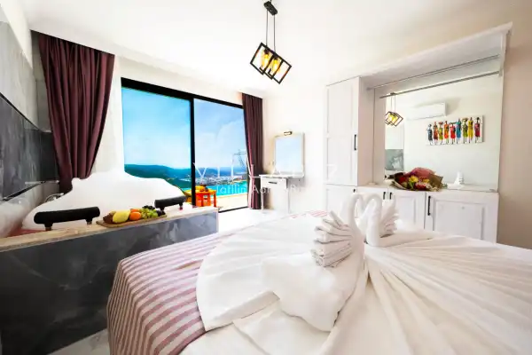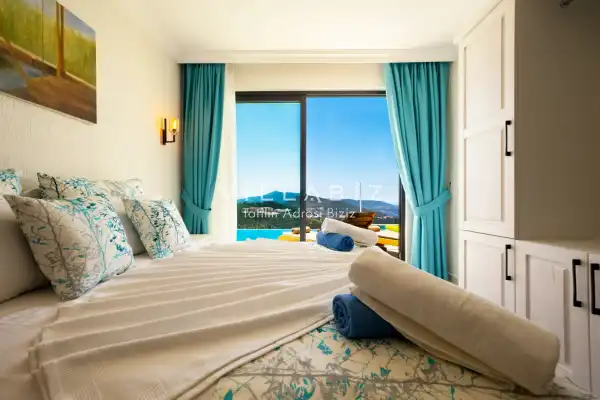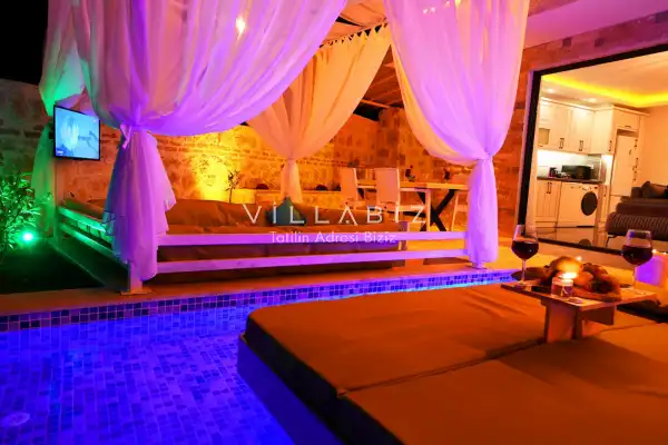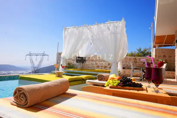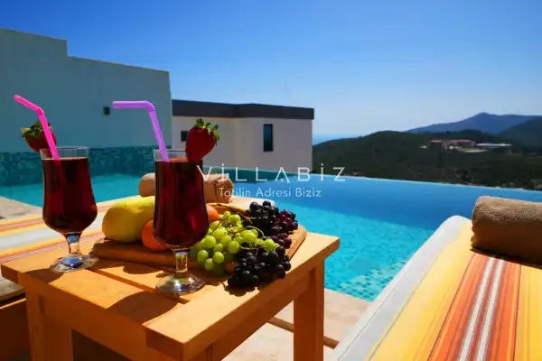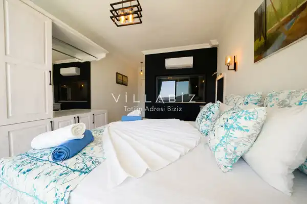 Muhteşem bir deniz manzarasına sahip olan villamız 4 kişi konaklama kapasitesine sahiptir. Sevdiklerinizle birlikte günbatımına karşı içeceklerinizi yudumlayıp manzaranın tadını çıkarabilirsiniz. Aynı zamanda merkeze ve plaja yakın bir konumda yer alan villamız siz değerli misafirlerimize keyifli bir taitl imkanı sunmaktadır.