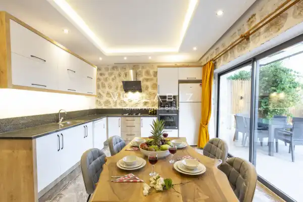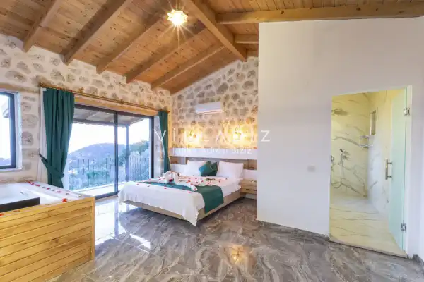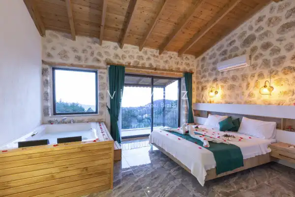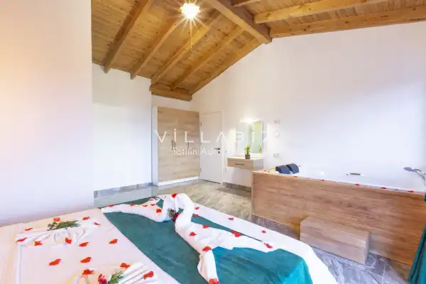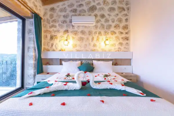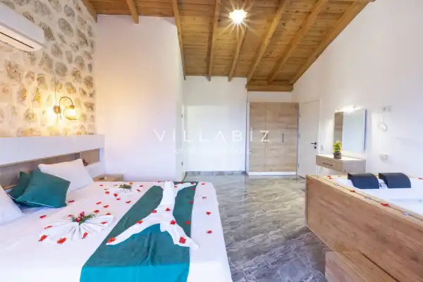 Toplam 2 yatak odasından oluşmuş, 4 kişi konaklama kapasitesine sahiptir. Çekirdek aileler ve arkadaş grupları ve balayı çiftleri için oldukça idealdir. Oldukça şık ve modern bir şekilde döşenmiş olan villamızda misafirlerimiz için her şey düşünülmüştür. Havuz terasında bulunan şezlonglarda güneşlenebilir, bahçe masasında muhteşem yemekler yiyebilir, salıncakta sallanıp keyifli dakikalar geçirebilirsiniz.