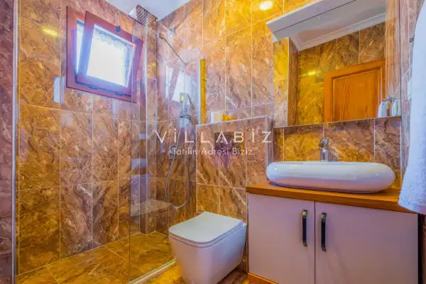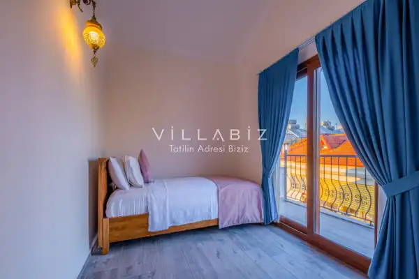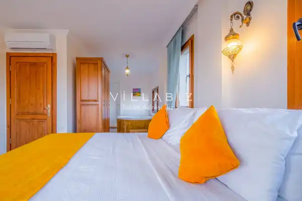 Toplam 5 yatak odasından oluşmuş, 10 kişi konaklama kapasitesine sahiptir. Geniş aileler ve kalabalık arkadaş grupları için oldukça idealdir. Oldukça şık ve modern bir şekilde döşenmiş olan villamızda misafirlerimiz için herşey düşünülmüştür. Havuz terasında bulunan şezlonglarda güneşlenebilir, bahçe masasında muhteşem yemekler yiyebilir, salıncakta sallanıp keyifli dakikalar geçirebilirsiniz.