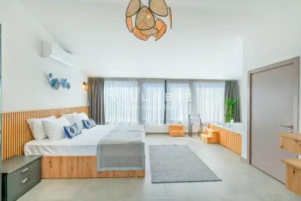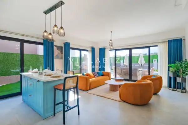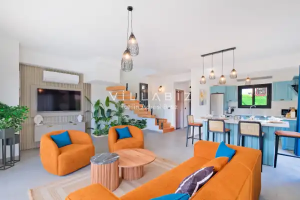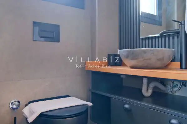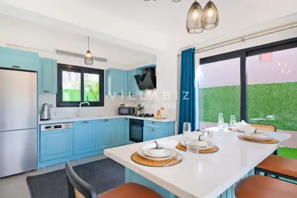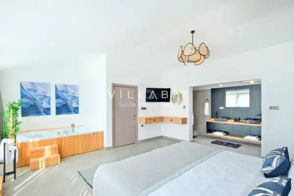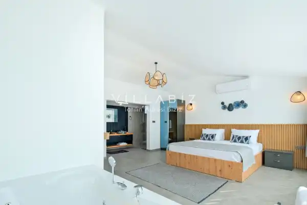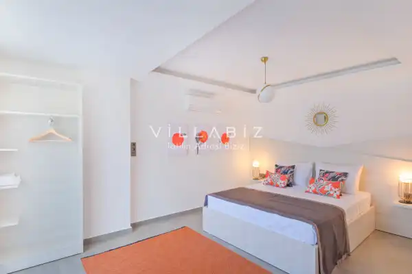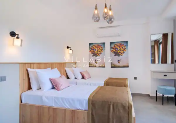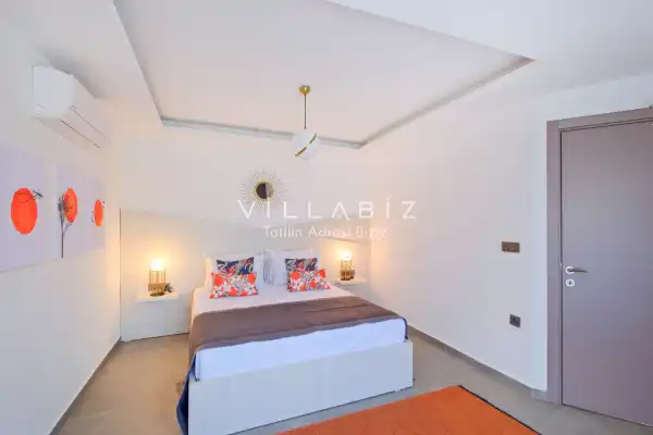 Toplam 3 yatak odasından oluşmuş, 6 kişi konaklama kapasitesine sahiptir. Geniş aileler ve kalabalık arkadaş grupları için oldukça idealdir. Oldukça şık ve modern bir şekilde döşenmiş olan villamızda misafirlerimiz için her şey düşünülmüştür. Havuz terasında bulunan şezlonglarda güneşlenebilir, bahçe masasında muhteşem yemekler yiyebilir, salıncakta sallanıp keyifli dakikalar geçirebilirsiniz.