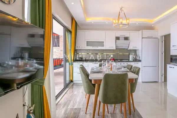 Muhteşem bir deniz manzarasına sahip olan villamız 8 kişi konaklama kapasitesine sahiptir. Sevdiklerinizle birlikte günbatımına karşı içeceklerinizi yudumlayıp manzaranın tadını çıkarabilirsiniz. Aynı zamanda merkeze ve plaja yakın bir konumda yer alan villamız siz değerli misafirlerimize keyifli bir taitl imkanı sunmaktadır.