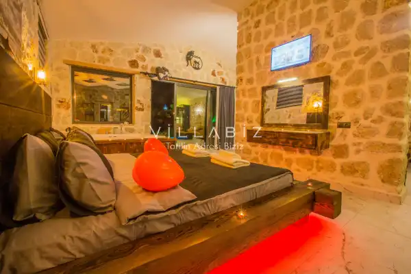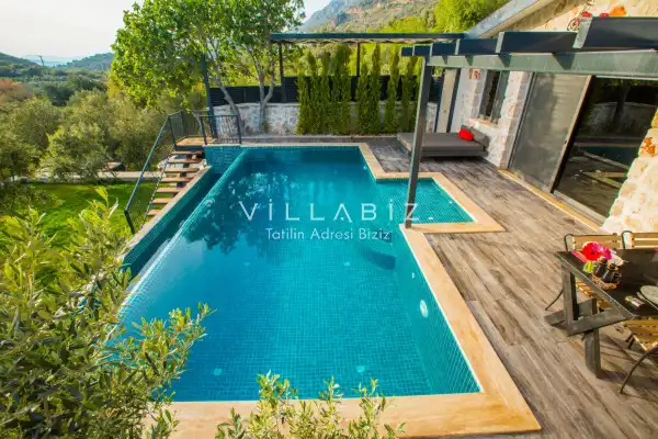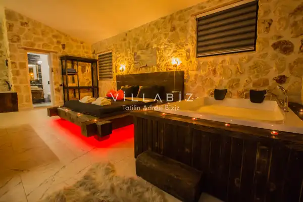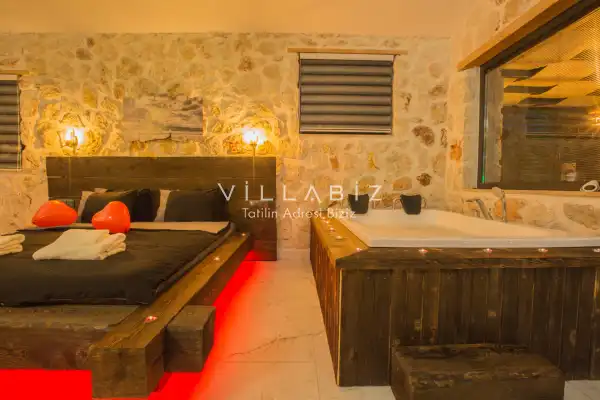 Toplam 1 yatak odasından oluşmuş, 2 kişi konaklama kapasitesine sahiptir.  Balayı Çiftleri için oldukça idealdir. Oldukça şık ve modern bir şekilde döşenmiş olan villamızda misafirlerimiz için her şey düşünülmüştür. Havuz terasında bulunan şezlonglarda güneşlenebilir, bahçe masasında muhteşem yemekler yiyebilir, salıncakta sallanıp keyifli dakikalar geçirebilirsiniz.