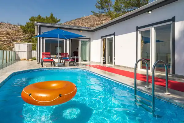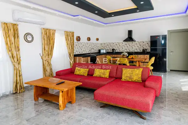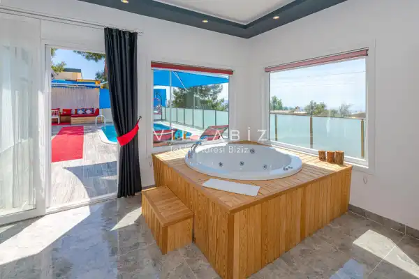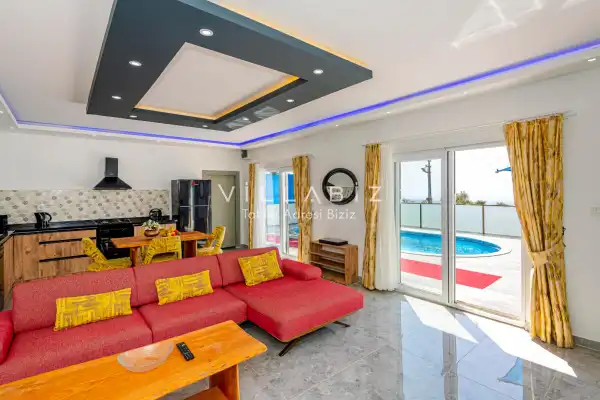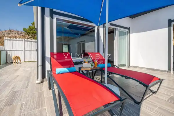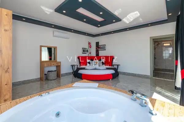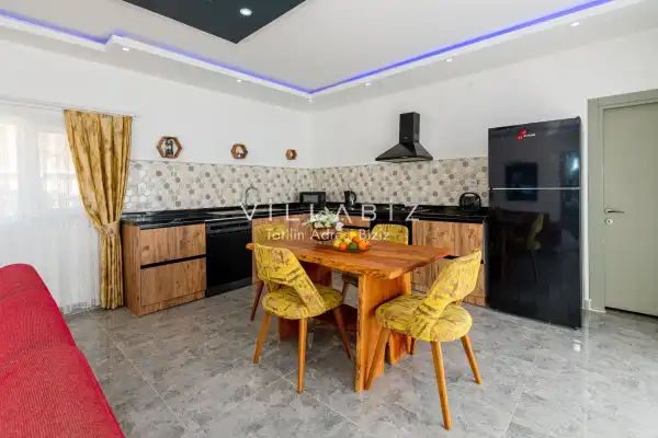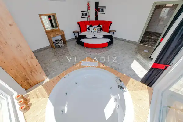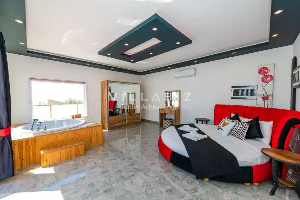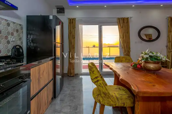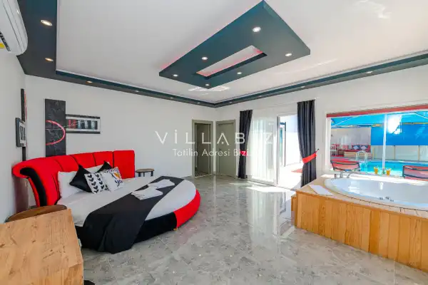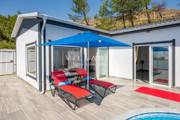 Villa 1 yatak odalı olup 2 kişilik konaklama kapasitesine sahiptir. Yatak odasında konforlu bir çift kişilik yatak, klima, elbise dolabı, jakuzi ve ebeveyn banyosu bulunmaktadır. Salon bölümünde modern oturma grubu, televizyon, klima ve açık plan tam donanımlı mutfak yer almaktadır. Mutfakta buzdolabı, ocak, fırın, yemek takımları ve temel mutfak ekipmanları eksiksiz şekilde sunulmaktadır.