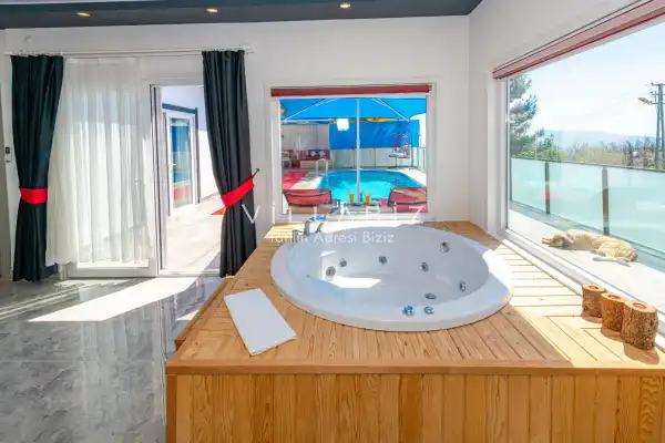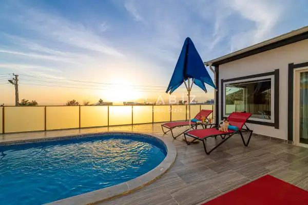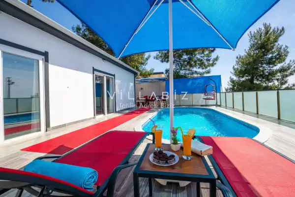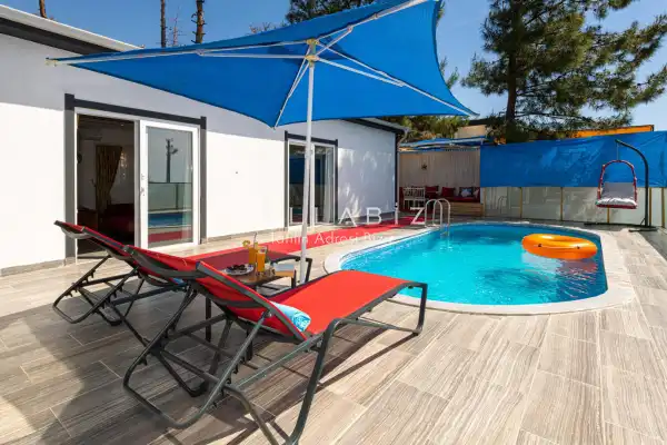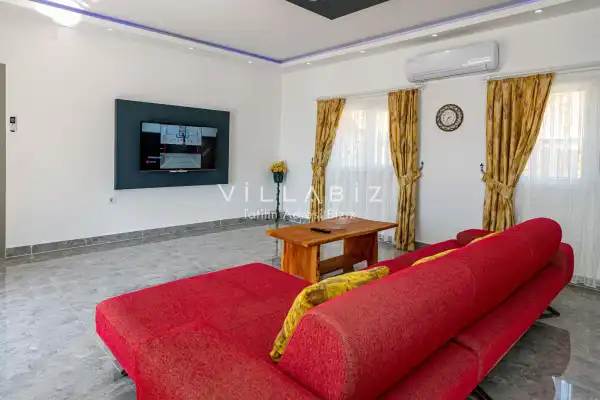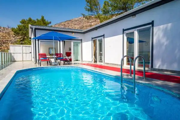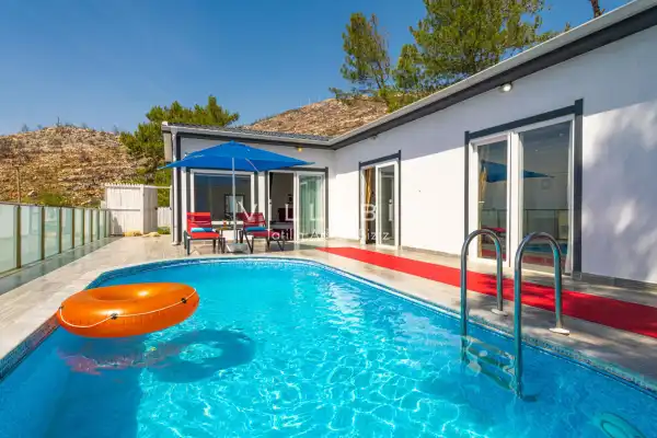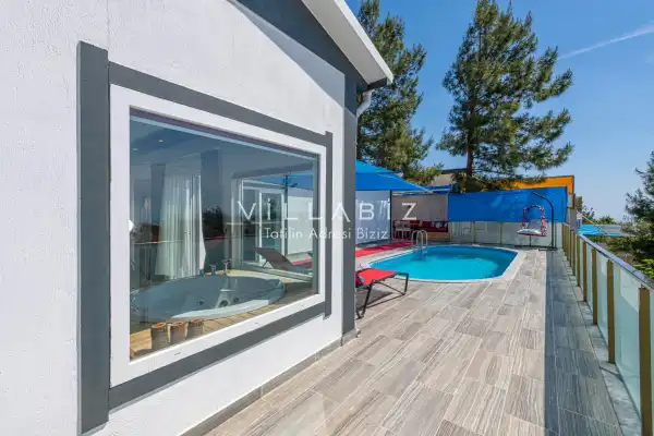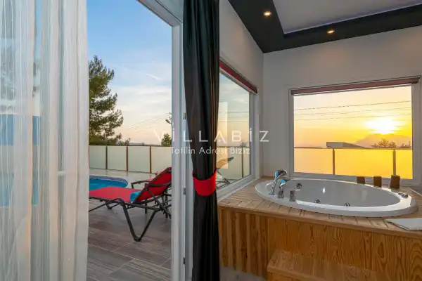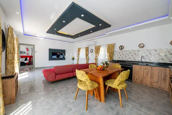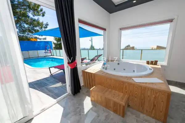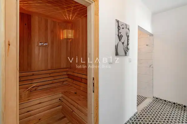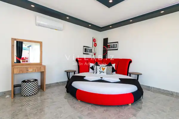 Villa 1 yatak odalı olup 2 kişilik konaklama kapasitesine sahiptir. Yatak odasında konforlu bir çift kişilik yatak, klima, elbise dolabı, jakuzi ve ebeveyn banyosu bulunmaktadır. Salon bölümünde modern oturma grubu, televizyon, klima ve açık plan tam donanımlı mutfak yer almaktadır. Mutfakta buzdolabı, ocak, fırın, yemek takımları ve temel mutfak ekipmanları eksiksiz şekilde sunulmaktadır.