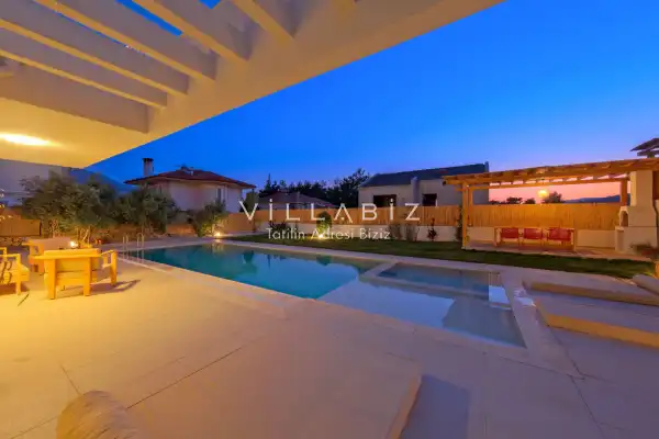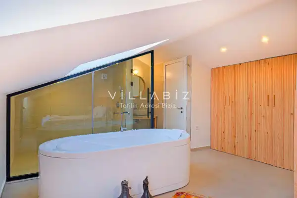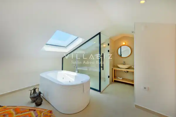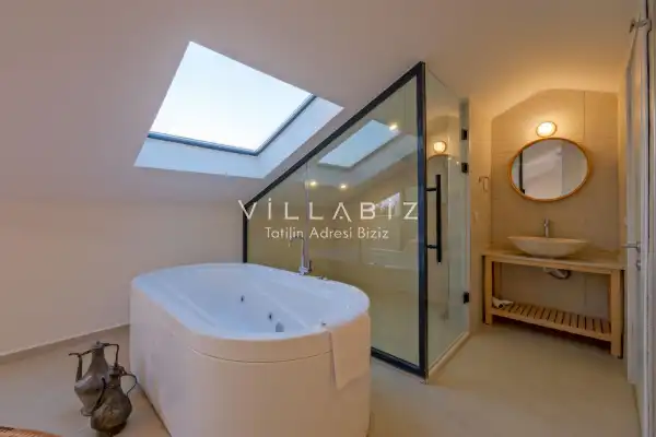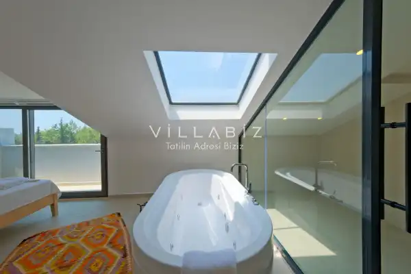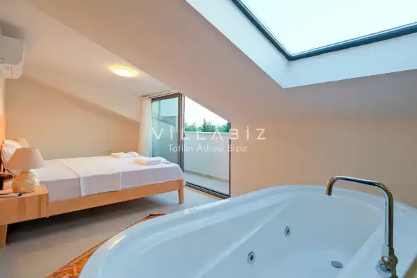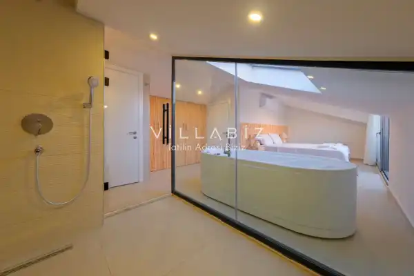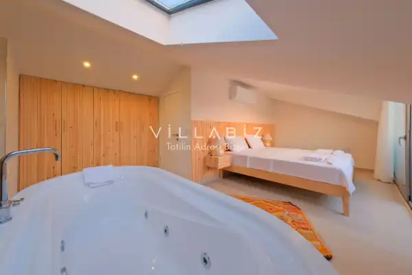 Özellikle geniş ailelerin sessiz, sakin, huzurlu ve bir o kadar da konforlu bir tatil geçirebilmesi adına tüm detayları barındıran villamızda sauna, kapalı ısıtmalı havuz ve Fransız küvet ile rahatlamanın ve lüksün tadını çıkarabilirsiniz.