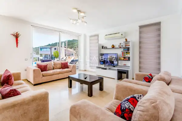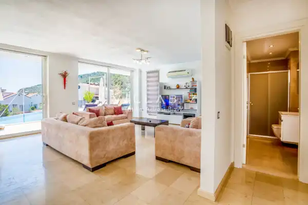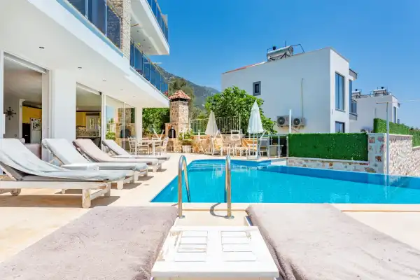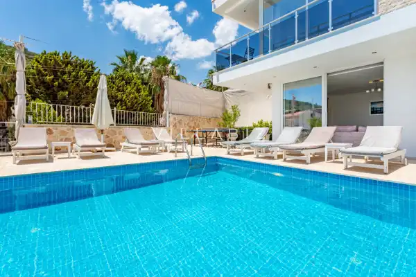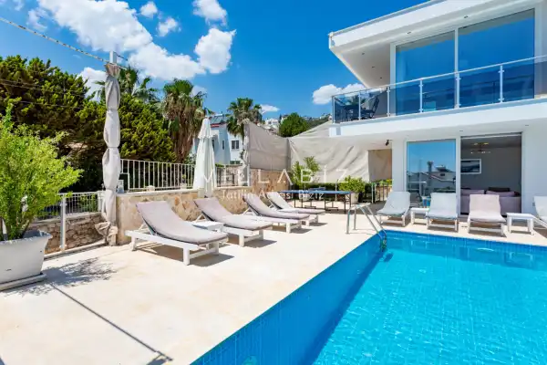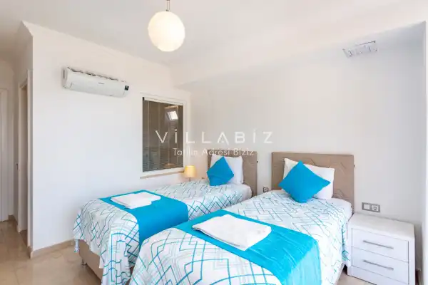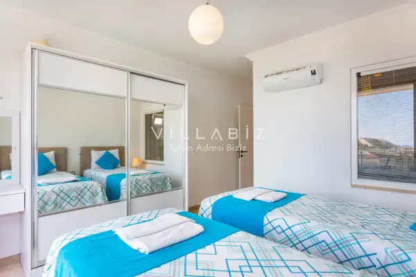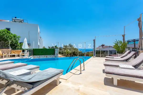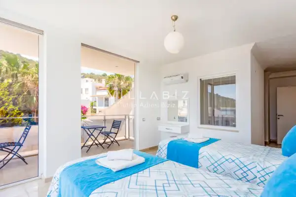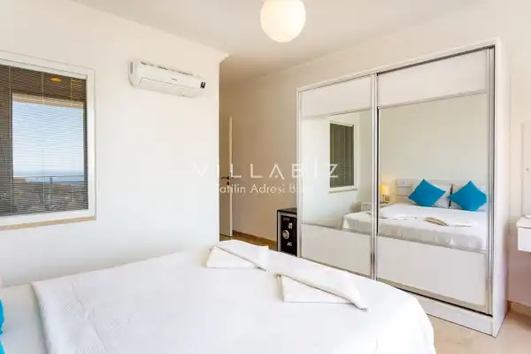 Kalkan Ortaalan Bölgesi'nde yer alan muhteşem deniz manzarasına sahip villamız, 8 kişilik kapasiteye sahip villada 4 yatak odası yer alıyor. Villanın birer banyosu mevcut. Açık mutfağı ve kendine ait bahçesinde bir havuzu var. Mutfağında bulaşık makinesi, buzdolabı, ankastre fırın, tost makinesi ve mutfakta ihtiyaç olan hemen hemen bütün gereçler bulunuyor. Barbekü, masa, sandalyeler, şezlonglar ve şemsiyeler bahçe keyfini sınırsız yaşamanıza imkan tanıyor. Salonunda oturma grubu, televizyon, eşyalar bulunurken, tüm odalar için ayrı klima imkanı var.8 kişilik kapasiteye sahip villada 4 yatak odası yer alıyor. Villanın birer banyosu mevcut. Açık mutfağı ve kendine ait bahçesinde bir havuzu var. Mutfağında bulaşık makinesi, buzdolabı, ankastre fırın, tost makinesi ve mutfakta ihtiyaç olan hemen hemen bütün gereçler bulunuyor. Barbekü, masa, sandalyeler, şezlonglar ve şemsiyeler bahçe keyfini sınırsız yaşamanıza imkan tanıyor. Salonunda oturma grubu, televizyon, eşyalar bulunurken, tüm odalar için ayrı klima imkanı var.