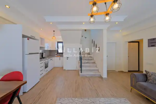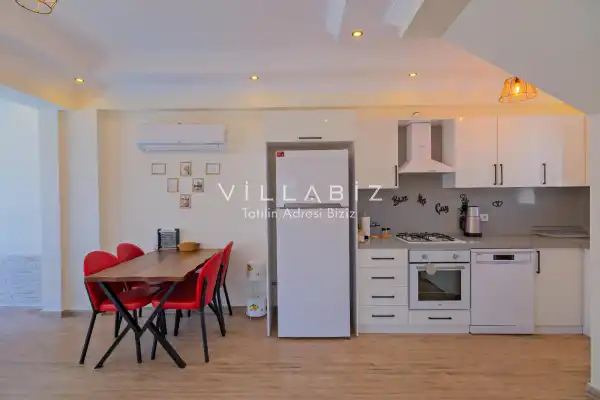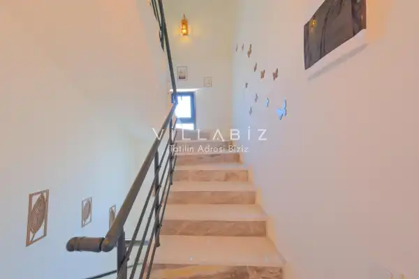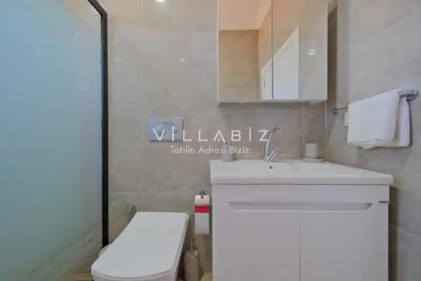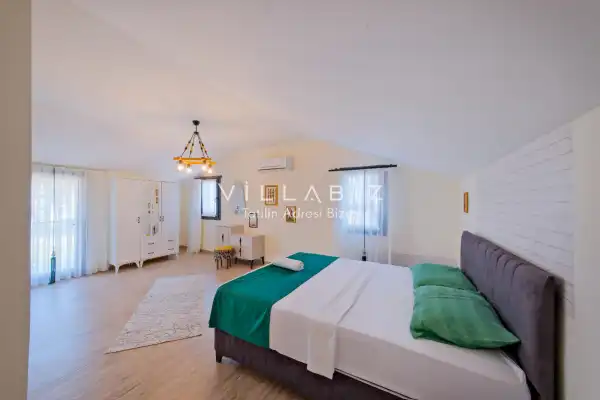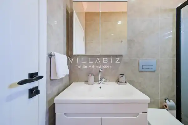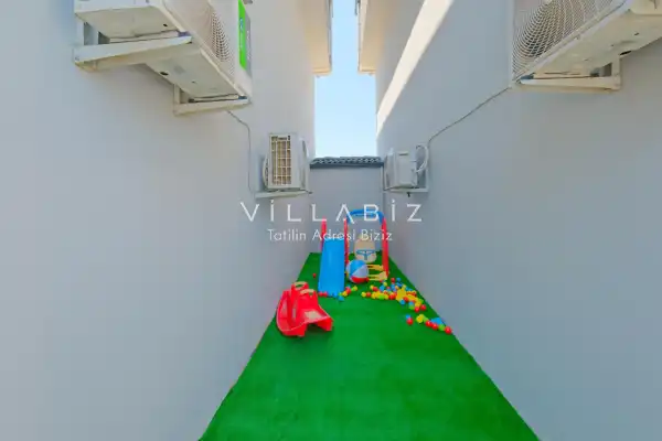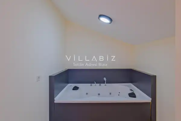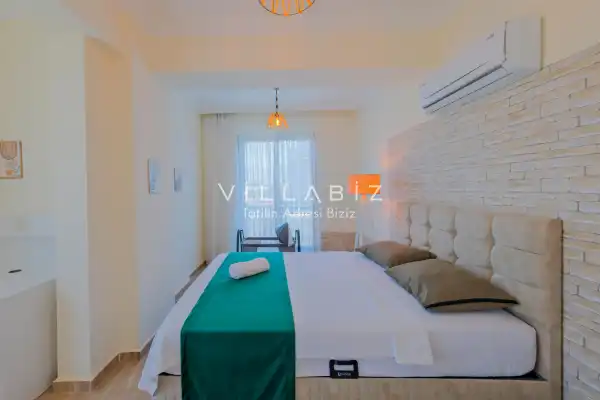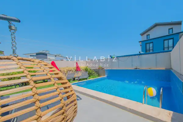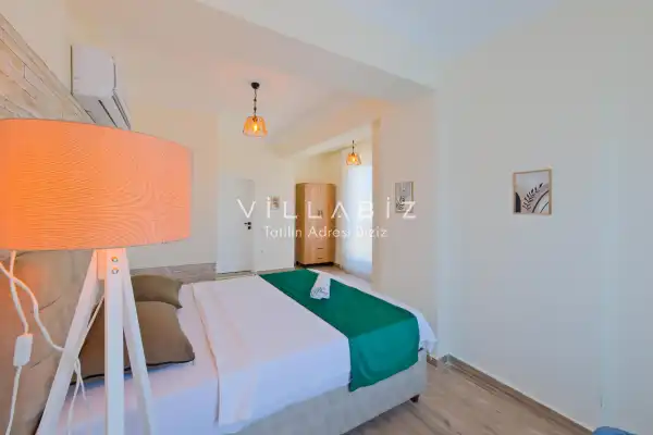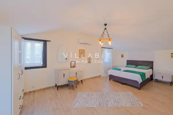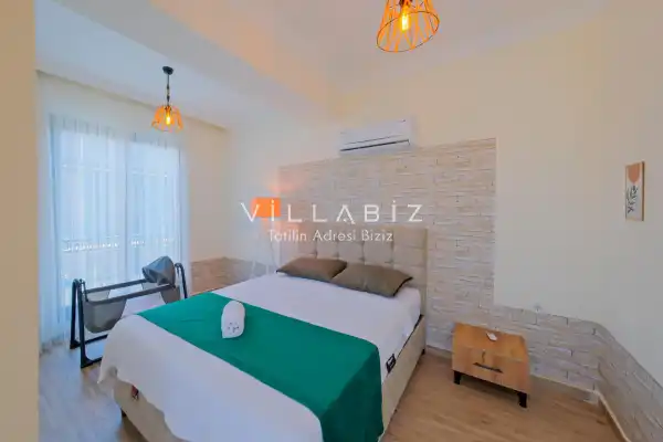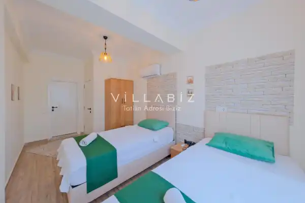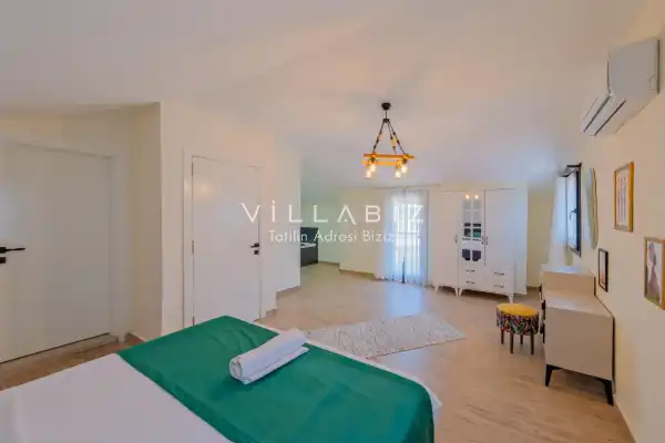 Toplam 3 yatak odasından oluşmuş, 6 kişi konaklama kapasitesine sahiptir. Geniş aileler ve kalabalık arkadaş grupları için oldukça idealdir. Oldukça şık ve modern bir şekilde döşenmiş olan villamızda misafirlerimiz için her şey düşünülmüştür. Havuz terasında bulunan şezlonglarda güneşlenebilir, bahçe masasında muhteşem yemekler yiyebilir, salıncakta sallanıp keyifli dakikalar geçirebilirsiniz.