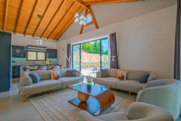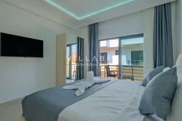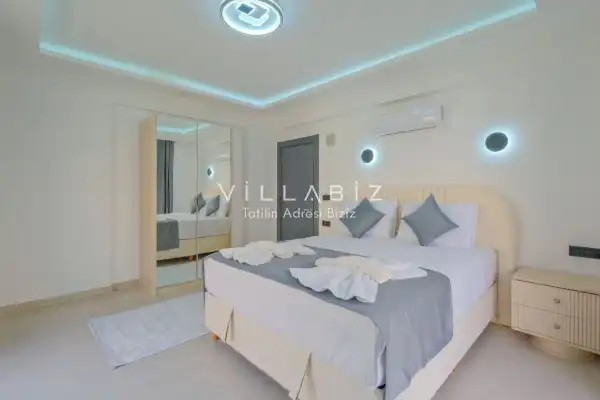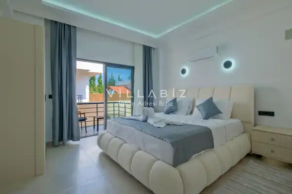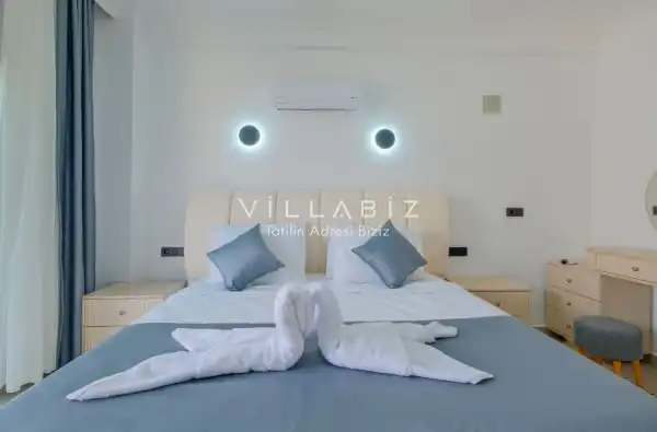 Toplam 4 yatak odasından oluşmuş, 8 kişi konaklama kapasitesine sahiptir. Geniş aileler ve kalabalık arkadaş grupları için oldukça idealdir. Oldukça şık ve modern bir şekilde döşenmiş olan villamızda misafirlerimiz için her şey düşünülmüştür. Havuz terasında bulunan şezlonglarda güneşlenebilir, bahçe masasında muhteşem yemekler yiyebilir, salıncakta sallanıp keyifli dakikalar geçirebilirsiniz.