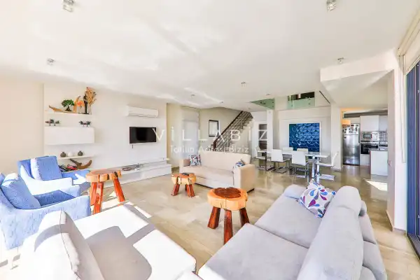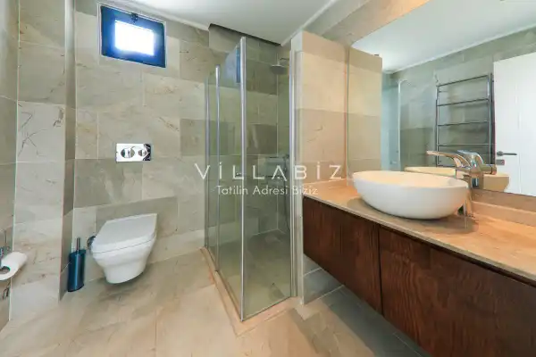 Toplam 3 yatak odasından oluşmuş, 6  kişi konaklama kapasitesine sahiptir. Geniş aileler ve kalabalık arkadaş grupları için oldukça idealdir. Oldukça şık ve modern bir şekilde döşenmiş olan villamızda misafirlerimiz için her şey düşünülmüştür. Havuz terasında bulunan şezlonglarda güneşlenebilir, bahçe masasında muhteşem yemekler yiyebilir, bilardo masasında keyifli dakikalar geçirebilirsiniz.