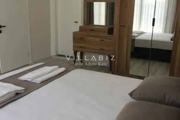 Toplam 2 yatak odasından oluşmuş, 4 kişi konaklama kapasitesine sahiptir. Çekirdek aileler ve arkadaş grupları ve balayı çiftleri için oldukça idealdir. Oldukça şık ve modern bir şekilde döşenmiş olan villamızda misafirlerimiz için her şey düşünülmüştür. Havuz terasında bulunan şezlonglarda güneşlenebilir, bahçe masasında muhteşem yemekler yiyebilir, salıncakta sallanıp keyifli dakikalar geçirebilirsiniz.