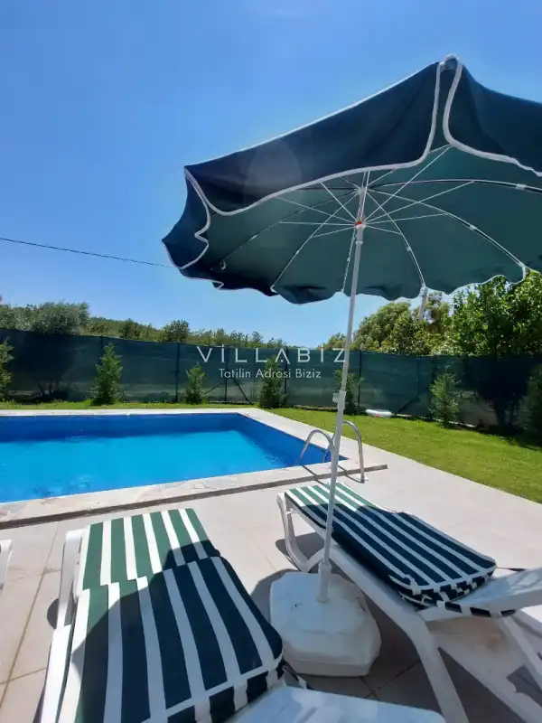 Toplam 2 yatak odasından oluşmuş, 4 kişi konaklama kapasitesine sahiptir. Çekirdek aileler ve arkadaş grupları için oldukça idealdir. Oldukça şık ve modern bir şekilde döşenmiş olan villamızda misafirlerimiz için her şey düşünülmüştür. Havuz terasında bulunan şezlonglarda güneşlenebilir, bahçe masasında muhteşem yemekler yiyebilir, salıncakta sallanıp keyifli dakikalar geçirebilirsiniz.