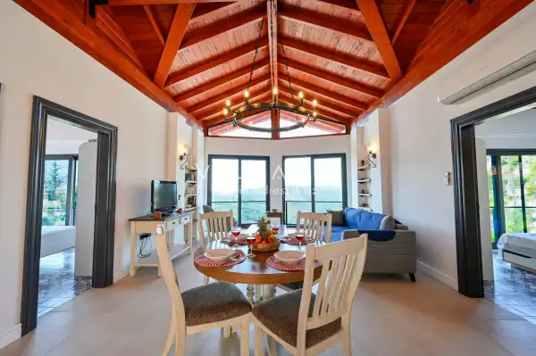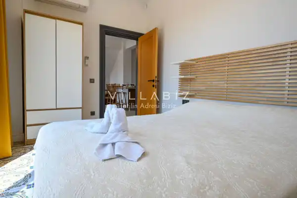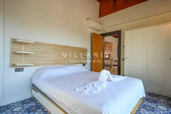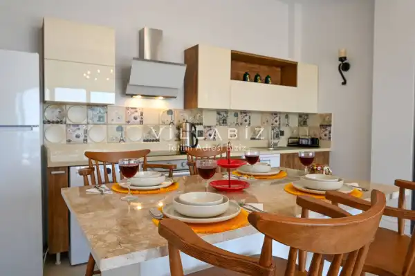 Toplam 3 yatak odasından oluşmuş, 6 kişi konaklama kapasitesine sahiptir. Geniş aileler için oldukça idealdir. Oldukça şık ve modern bir şekilde döşenmiş olan villamızda misafirlerimiz için her şey düşünülmüştür. Havuz terasında bulunan şezlonglarda güneşlenebilir, bahçe masasında muhteşem yemekler yiyebilir, salıncakta sallanıp keyifli dakikalar geçirebilirsiniz.