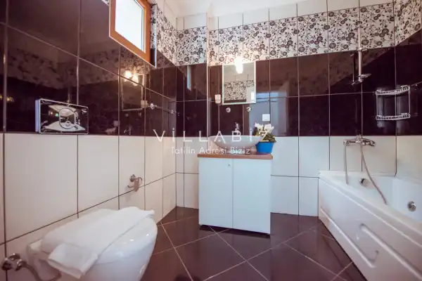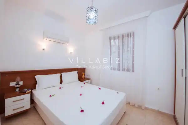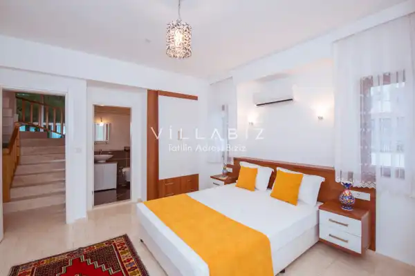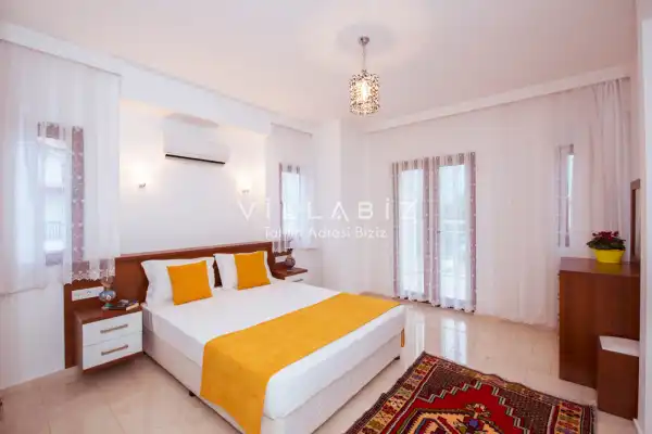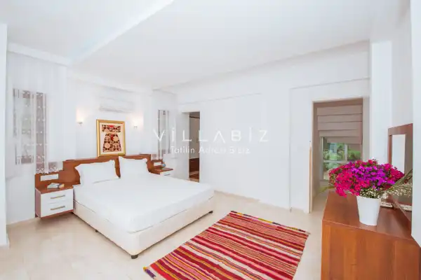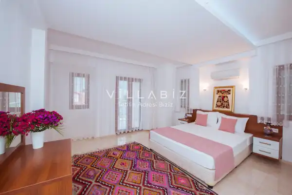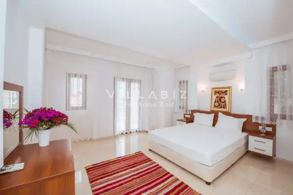Toplam 5 yatak odasından oluşmuş, 10 kişi konaklama kapasitesine sahiptir. Geniş aileler ve kalabalık arkadaş grupları için oldukça idealdir. Oldukça şık ve modern bir şekilde döşenmiş olan villamızda misafirlerimiz için herşey düşünülmüştür. Havuz terasında bulunan şezlonglarda güneşlenebilir, bahçe masasında muhteşem yemekler yiyebilir, salıncakta sallanıp keyifli dakikalar geçirebilirsiniz.
