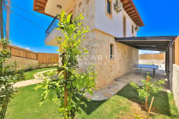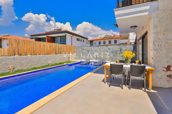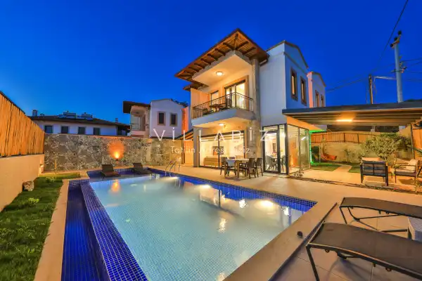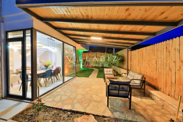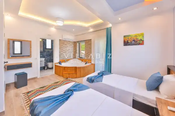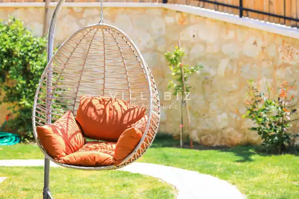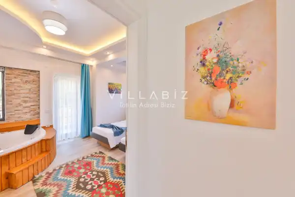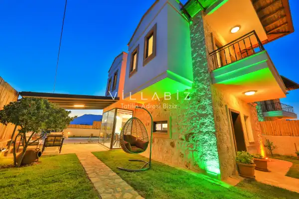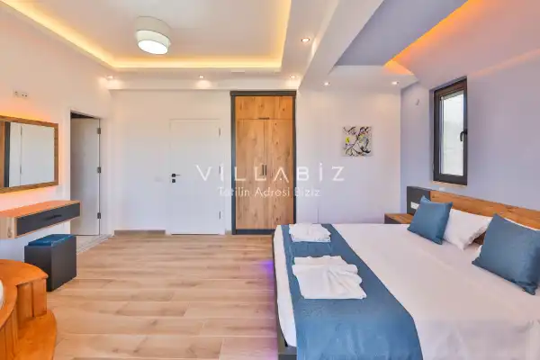 Toplam 4 yatak odasından oluşmuş, 8 kişi konaklama kapasitesine sahiptir. Balayı çiftleri, çekirdek aileler ve kalabalık olmayan arkadaş grupları için oldukça idealdir. Oldukça şık ve modern bir şekilde döşenmiş olan villamızda misafirlerimiz için her şey düşünülmüştür. Havuz terasında bulunan şezlonglarda güneşlenebilir, bahçe masasında muhteşem yemekler yiyebilir, salıncakta sallanıp keyifli dakikalar geçirebilirsiniz.