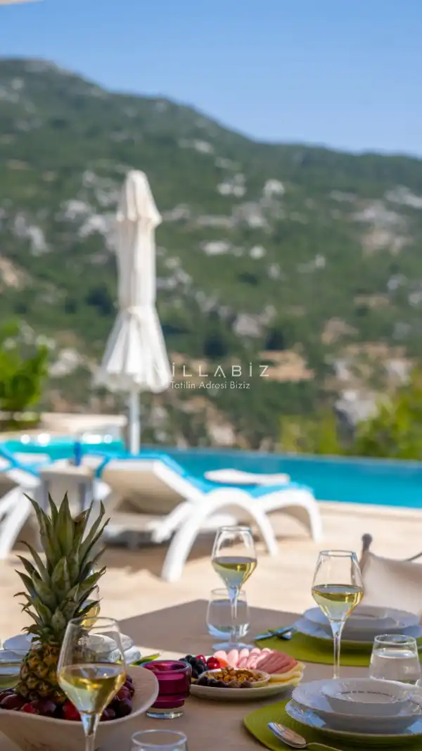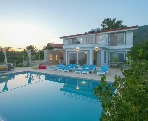 Villamız Kaş/Kalkan tatil beldesinin sakin konumlarından İslamlar mevkiinde yer almaktadır. Son yılların villa tatili gözdesi olmuş, etrafı ormanlarla çevrili, merkeze araçla 5 dakikada ulaşabildiğiniz konumu ve muhteşem manzarasıyla konaklayanlarına lüks bir tatil imkanı sağlamaktadır. Villamız harika doğa manzaralı, 2 kişilik lüks bir balayı villasıdır. Modern tasarımı olan villamızın havuzu jakuzili olup harika manzaralı ferah bir terasa sahiptir, doğayla iç içedir.