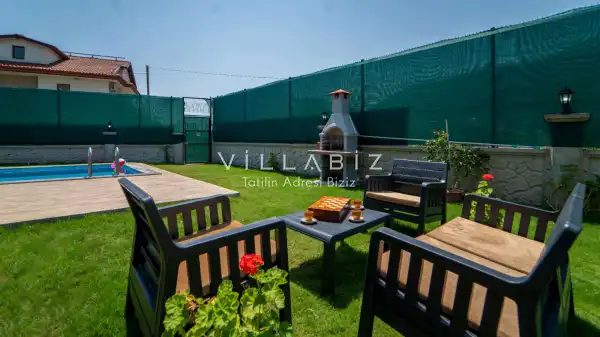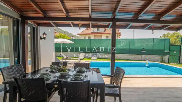 Toplam 2 yatak odasından oluşmuş, 4 kişi konaklama kapasitesine sahiptir. Çekirdek aileler ve Dört'lü arkadaş grupları için oldukça idealdir. Oldukça şık ve modern bir şekilde döşenmiş olan villamızda misafirlerimiz için her şey düşünülmüştür. Havuz terasında bulunan şezlonglarda güneşlenebilir, bahçe masasında muhteşem yemekler yiyebilir, doğa manzarası eşliğinde salıncakta keyifli dakikalar geçirebilirsiniz.