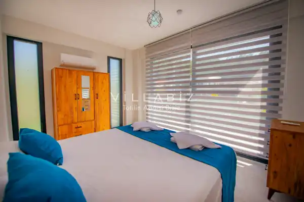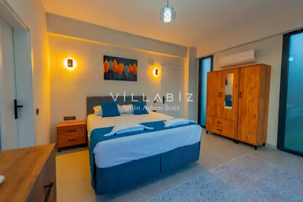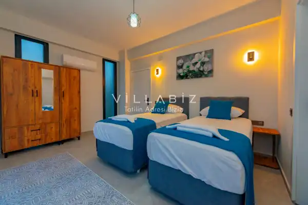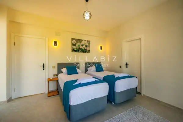 Toplam 2 yatak odasından oluşmuş, 4 kişi konaklama kapasitesine sahiptir. Çekirdek aileler ve arkadaş grupları için oldukça idealdir. Oldukça şık ve modern bir şekilde döşenmiş olan villamızda misafirlerimiz için her şey düşünülmüştür. Havuz terasında bulunan şezlonglarda güneşlenebilir, bahçe masasında muhteşem yemekler yiyebilir, salıncakta sallanıp keyifli dakikalar geçirebilirsiniz.