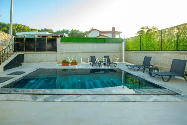 Villa Özel, Fethiye Yeşilüzümlü mevkiinde konumlanan şirin bahçeli havuzu oldukça korunaklı villamızdır. Müstakil yüzme havuzu dışarıya karşı oldukça korunaklı olduğu için tatilde gözlerden uzak olmak isteyen misafirlerimiz rahat edeceklerdir.