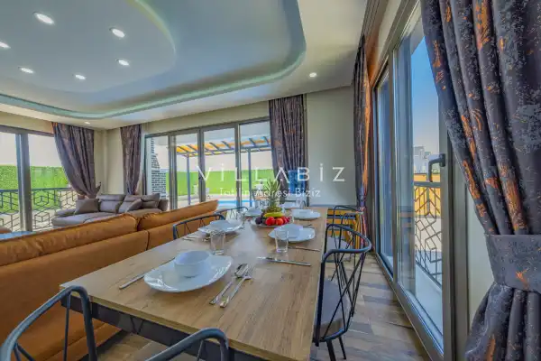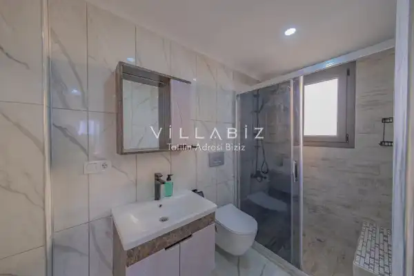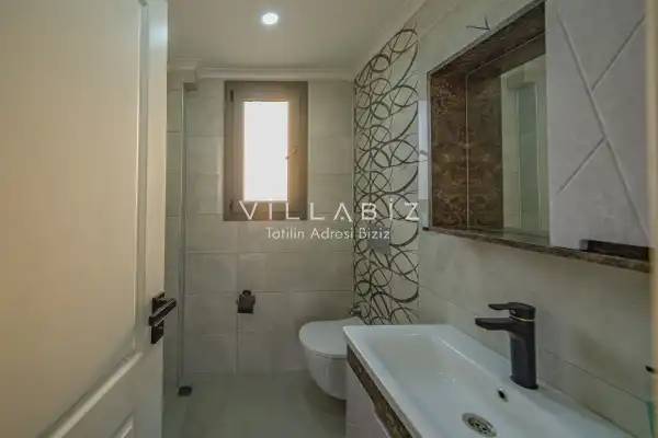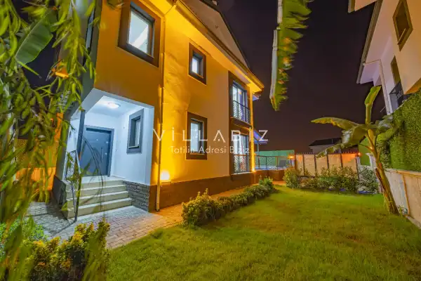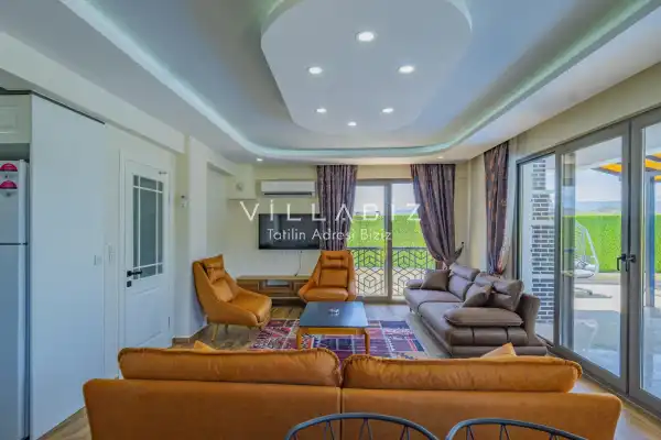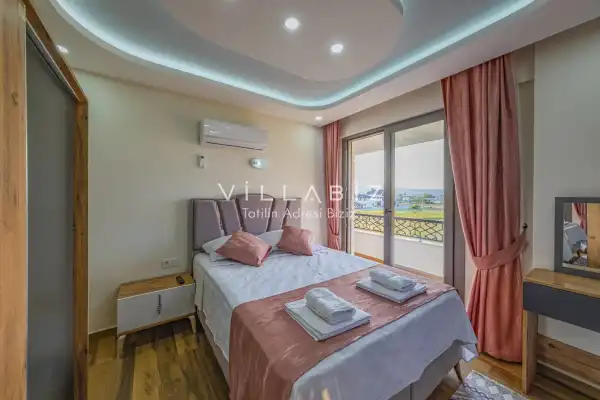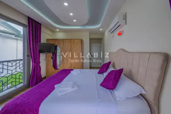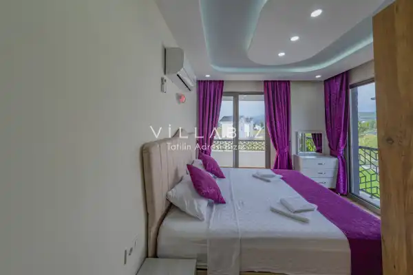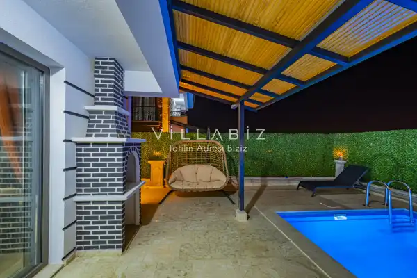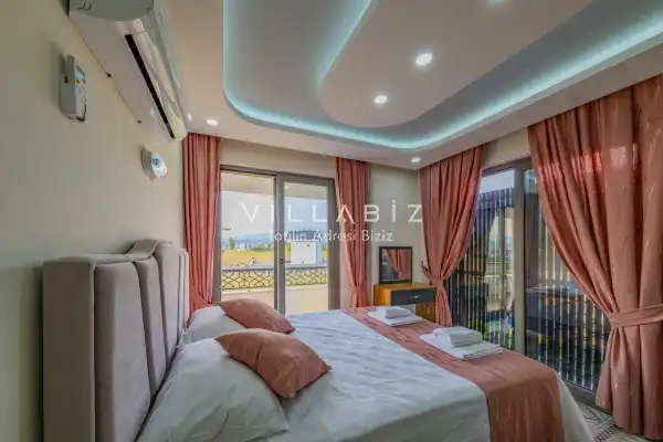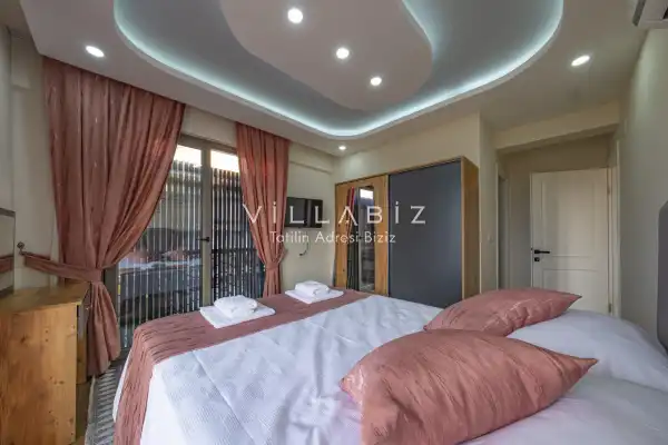 Toplam 3 yatak odasından oluşmuş, 5 kişi konaklama kapasitesine sahiptir. Geniş aileler ve kalabalık arkadaş grupları için oldukça idealdir. Oldukça şık ve modern bir şekilde döşenmiş olan villamızda misafirlerimiz için her şey düşünülmüştür. Havuz terasında bulunan şezlonglarda güneşlenebilir, bahçe masasında muhteşem yemekler yiyebilir, salıncakta sallanıp keyifli dakikalar geçirebilirsiniz.