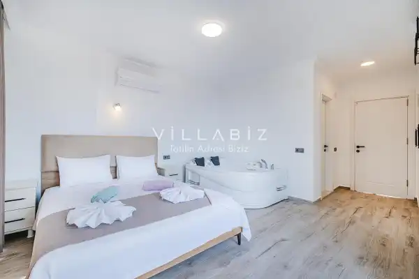 Toplam 3 yatak odasından oluşmuş, 6 kişi konaklama kapasitesine sahiptir. Geniş aileler ve kalabalık arkadaş grupları için oldukça idealdir. Oldukça şık ve modern bir şekilde döşenmiş olan villamızda misafirlerimiz için herşey düşünülmüştür. Havuz terasında bulunan şezlonglarda güneşlenebilir, bahçe masasında muhteşem yemekler yiyebilir, salıncakta sallanıp keyifli dakikalar geçirebilirsiniz.