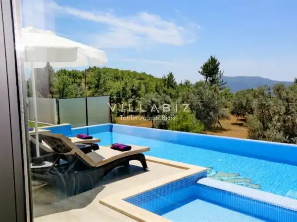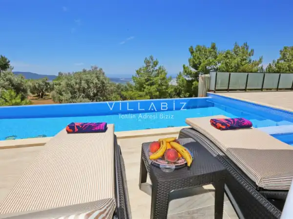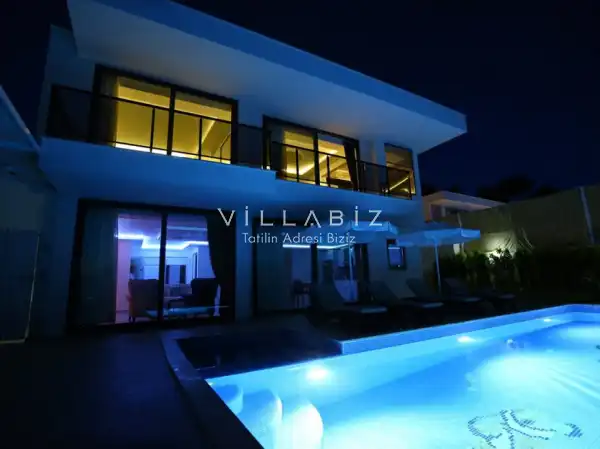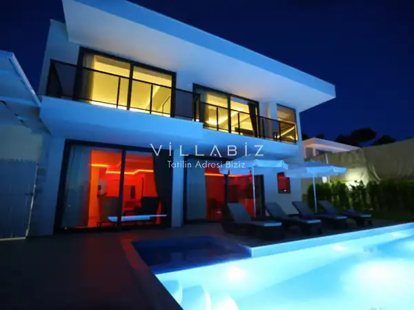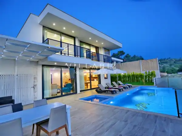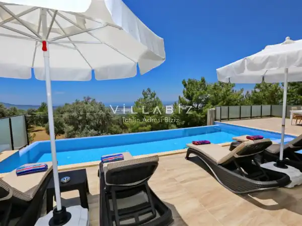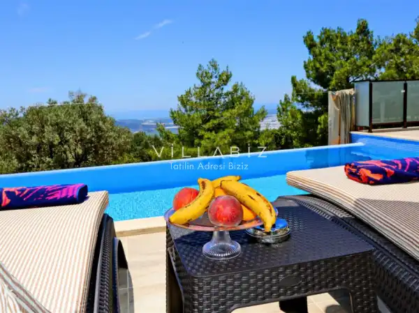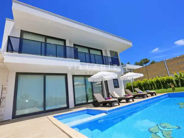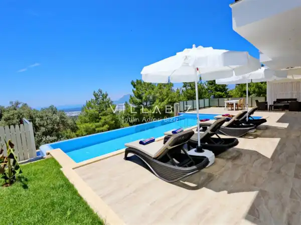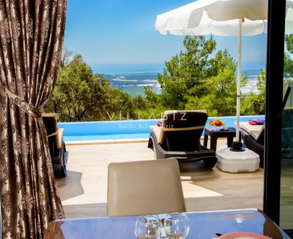 Villamız Antalya'nın en sakin ve Akdeniz koylarının masmavi büyüleyiciliğine sahip bölgesi Kalkan'ın Üzümlü mevkiinde yer almaktadır. Etrafını saran çam ve sedir ormanlarının, kusursuz maki iklimiyle birleştiği; sonunun hep sonsuz maviliklere eriştiği konumuyla kusursuz bir tatil isteyen balayı çiftlerimizin her anını özel ve unutulmaz kılmaktadır. Patara plajı, Kaputaş Plajı, Saklıkent Kanyonu, Gizlikent Şelalesi gibi turistik alanlara yakınlığıyla da trafiğe takılmadan etrafı keşfedecekleri bir tatil imkanı sunmaktadır.